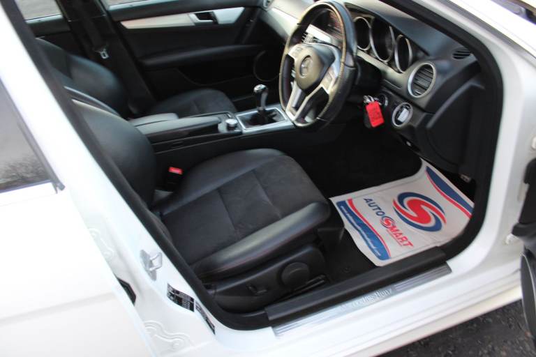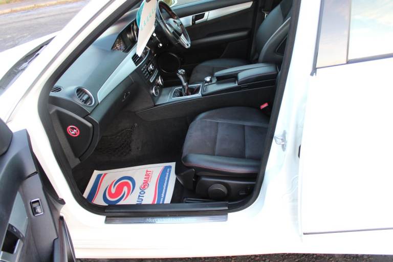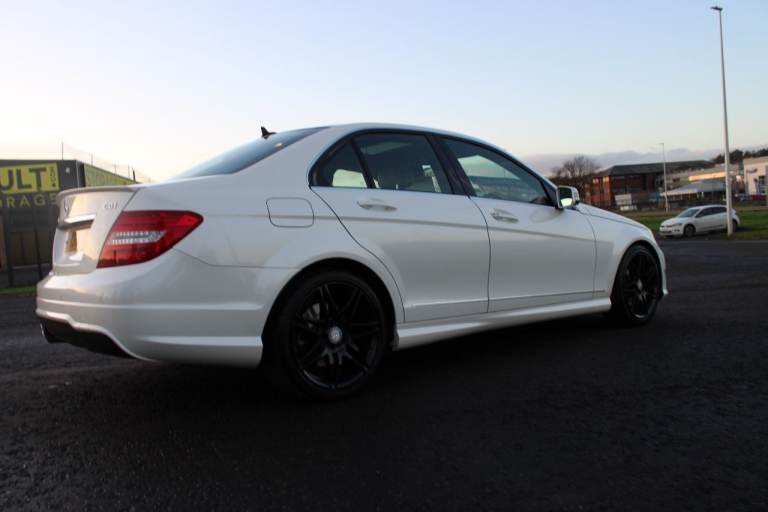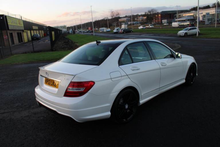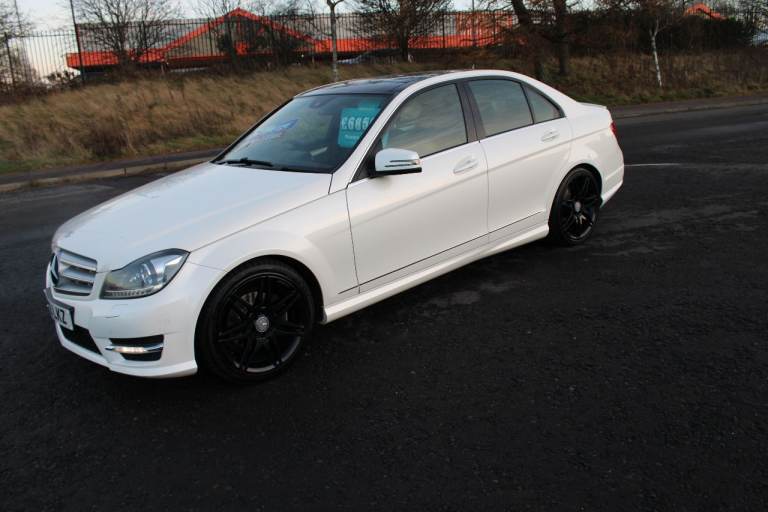 Super Example of this C-Class AMG Line,This Sport Plus Model has had Only 1 Previous Owner and comes with Great Spec including 18*Gloss Black Alloys,Heated Half Black Leather/cloth seats,Panoramic Glass Roof,Sat Nav,Bluetooth,Climate Control,Front&Rear Parking Sensors,Cruise Control,Remote Central Locking(2 keys) and lots more,Very Economical 2.1 Turbo Diesel Returns an average of 55mpg,Finished in Pearlescent White Metalic,Superb Looking&Driving Mercedes,