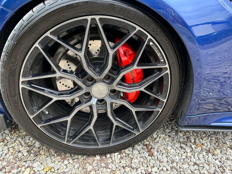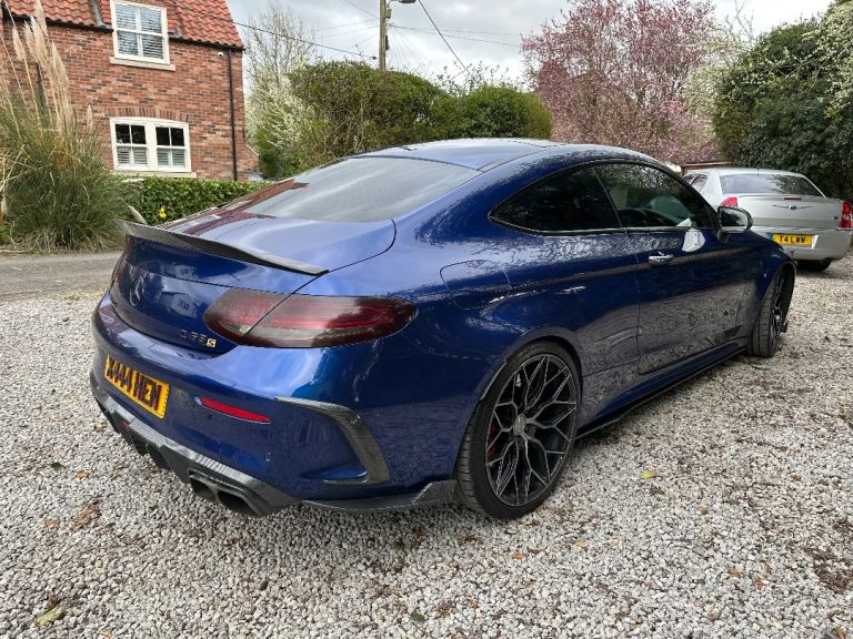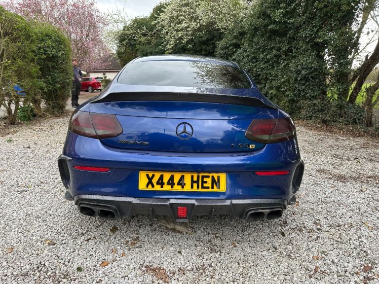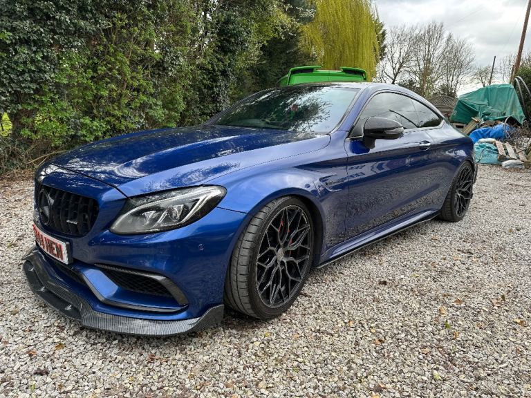 Full Mercedes service history, 65k miles, 20 inch alloys( have the standard alloys also), lowered h&R suspension by 25mm, professional stage 2 remap which was done by MSL at Birmingham taking the car up to 650bhp, uprated exhausts flap the car sounds amazing, carbon fibre splitter, carbon side skirts, carbon spoiler, carbon rear defuser, has AMG night package, Buniester sound system, active park assistance, cruise control, auto high beam assist, memory package also a lot more with it been the premium package, lovely brilliant blue metallic paint work, HPI clear. Would need a new wing mirror or could use as it is.