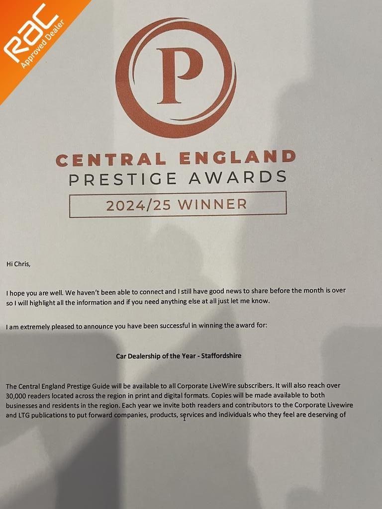 Our customers regularly score us five stars across many independent review sites and we're proud to have won the award for the Best Used Vehicle Retailer in Staffordshire every year from 2019 to 2025, as voted by the public & the judging panel at the SME and MNA Midland News Association of Motoring. This is recognition for us of the highest standard & assurance that you are in safe hands when you buy from us.