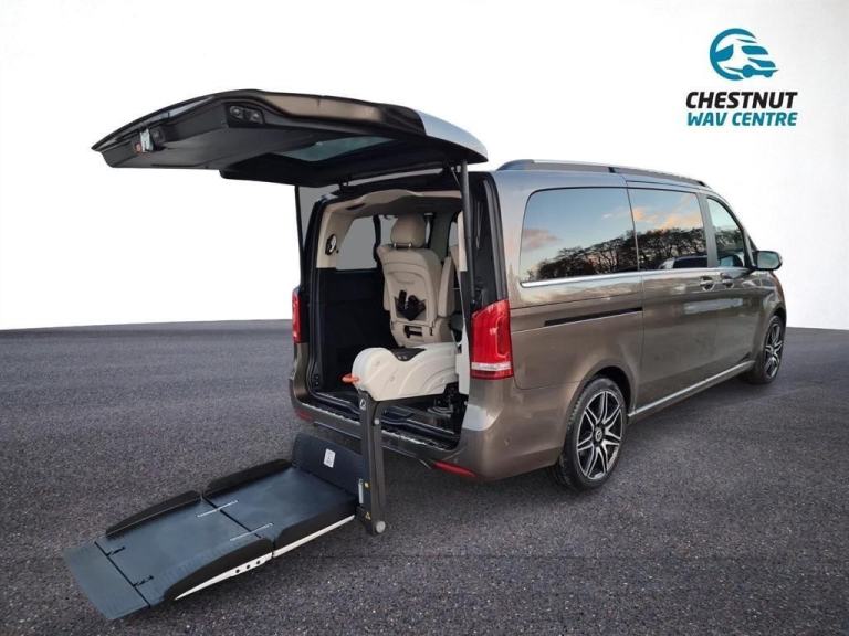 Automatic Mercedes-Benz AMG V250 V Class WAV Wheelchair Access Vehicle In Grey - 2018 / 18 Plate - Lewis Reed Conversion - One Owner, Motability Fleet - Will Come With A New MOT With No Advisories, A Full Service, A Warranty & 2 Keys - 2.2 Diesel - 161BHP - 53,000 Miles - Full Motability Service History - Full Cream Leather Interior - 6 Full Size Leather Seats With Arm Rests - 5 Doors - Pan Roof - Wheelchair Lift - Automatic Side Doors - Auto Tailgate - Front Heated Seats - Air Con Front & Rear - Front & Rear Parking Sensors - Rear Camera - Cruise Control - Bluetooth - 19in Alloy Wheels - 5-Twin-Spoke Design - Ambient Lighting -Tinted Rear Windows - Hard Floor With Tracking To Change Seating Configuration - Rear LED Lighting