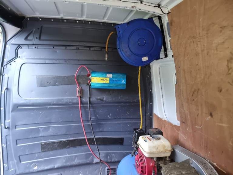 COMES COMPLETE WITH HONDA PETROL COMPRESSOR, BALANCER AND TYRE FITTING MACHINE, WORKING INVERTOR, AIR HOSES, LEISURE BATTERY. ALL WORKING READY TO GO.