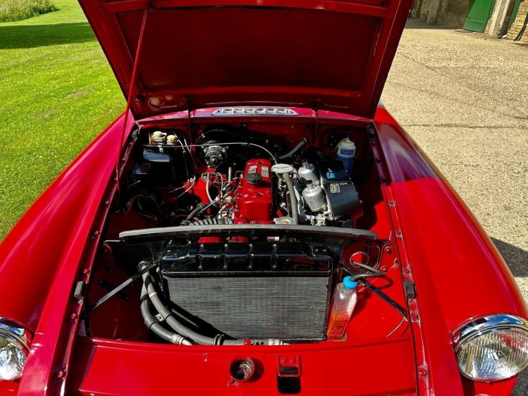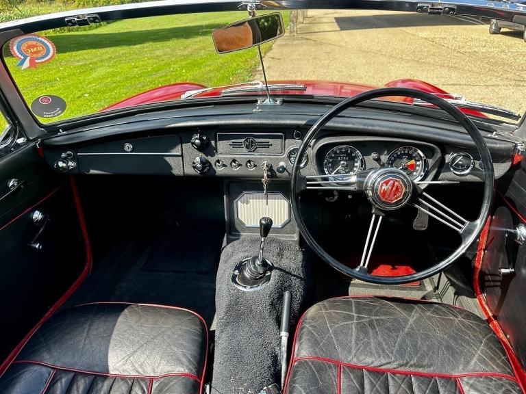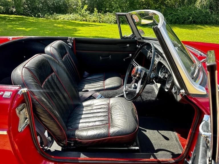 The bodywork wears its original MG factory applied 1966 cellulose paint that remains untouched by modern restoration methods. It carries the gentle patina of age with the swirls, light imperfections and character that only time can create and we have absolutely no intention of mopping or polishing away any of its authenticity. There is an old saying that something can only be original once and this car is a rare testament to that philosophy. It retains the factory correct pressed steel road wheel with chrome hubcaps, the original brightwork and has a cabin that is equally untouched by modern restoration processes. The Black leather seats show a gentle, age related patina that speaks of 59 years of careful use rather than wear, while the original rubber floor covering still lies in place. Aside from a required conversion of the cylinder head to accommodate modern unleaded fuel, the engine is exactly as it left the factory, which is a rare occurrence for any classic car, let alone one nearly 60 years old.
