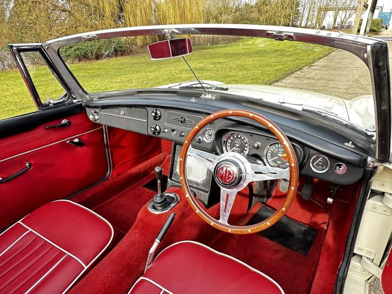 With us here at RFH Classics we have this 1967 (F) MGB 1.8 Roadster finished in the stunning Old English White with a striking Red Black Leather interior trim and matching Red Roof. This beautiful looking MGB looks amazing in this very eye catching colour scheme which is finished off with the addition of Chrome Wire Wheels and Overdrive.
