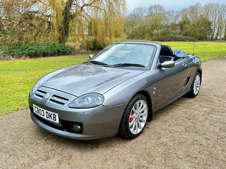 With us here at RFH Classics we have this fantastic looking 2003 (03) MG TF 135 Convertible that is perfect for you to enjoy this summer. Finished in the stylish Metallic Grey with a Grey Cloth interior this lower mileage TF has covered just over 52,700# miles and is in excellent condition throughout. This very well maintained car benefits from the 1.8 16v 135 hp four cylinder petrol engine that delivers the power via the 5 speed manual gearbox. To support the mileage, the car has an excellent service history that includes a documented history of the head gasket, water pump, and cam belt all being replaced replacement at 47,836 miles by Vs well known MG & MF TF specialist who also undertook the replacement of the coolant pipes with the upgraded parts to ensure improved reliability.