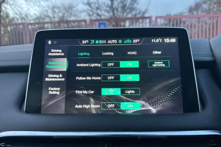 ..10.1'' colour touchscreen, 12.3'' Full digital driver information display, 360 degree parking camera, Adaptive cruise control, Android Auto, Apple CarPlay, Blind Spot Detection (BAS), Bluetooth connectivity, Emergency call service, Intelligent speed assist, Lane keep assist system (LAS) with Lane departure warning system (LDWS), PAS, Power tailgate, Rear cross traffic alert, Rear parking sensors, Satellite navigation system, Traffic jam assist, Trip computer, USB mobile phone charging function, 6 speaker audio system, DAB audio, Auto dimming rear view mirror, Automatic headlights, Body colour electric adjustable heated door mirrors, Electric folding door mirrors, Follow me home headlights, Front and rear aero wiper, Front and rear electric windows with one-touch up/down, Front fog lights, Intelligent high beam, LED Bi-Function headlights, LED centre brake light, LED daytime running lights, LED front and rear sequential indicators, Panoramic sky roof, Rain sensing wipers, Rear side wing doors, Silver roof rails, 12V power sockets, 2nd row 60/40 split fold seat, 2nd row seat with 2 stage incline adjustment, 3 rear headrests, 3 seat bench in 2nd row, 4 way electric adjustable passenger seat, 6 way electric adjustable drivers seat + lumbar support, Ambient lighting, Dual zone automatic air conditioning, Front centre sliding armrest with storage compartment, Front headrests, Heated front seats, Height and reach adjustable steering wheel, ISOFIX restraints on outer rear seats x2, Leather steering wheel, Metal sports pedals, Single passenger seat, Sports Style Front Seats with One-Piece Back, 3x3 point rear seatbelts, ABS/EBD, Active emergency braking with pedestrian/Bicycle detection, Anti rolling protection, Cornering brake control (CBC), Driver, passenger and 2nd row rear seat belt reminder, Dual front airbags, Electric parking brake with auto hold function, ESP, Front passenger airbag deactivation switch, Front seat belt height adjuster, Front seatbelts (3-point + pretensioner + load limiter), Front side airbags, Hill descent control, Hill launch assist, Manual rear child locks, Rear outer seatbelt pretensioner and load limiter, Side curtain airbags, Tyre pressure monitoring system, Alarm system and engine immobiliser, Keyless entry and push button start system, Remote central locking, Speed sensing door locks, 18'' Hurricane diamond cut alloy wheels, Tyre repair kit