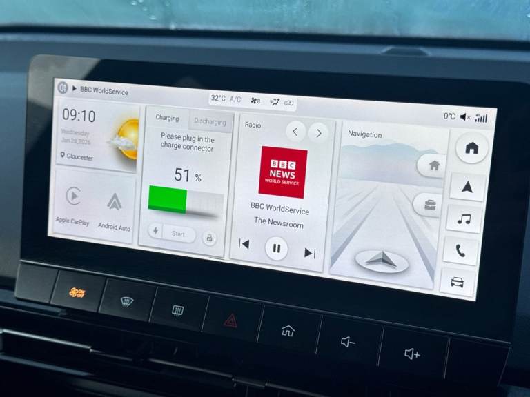 ..10.25'' floating colour touchscreen, 360 degree parking camera, 5 driving modes (Eco, sport, snow, custom, standard), 7'' Full digital driver information display, Adaptive cruise control, Android Auto, Apple CarPlay, Blind Spot Detection (BAS), Driver attention assist, E-call, Intelligent speed limit assist with traffic sign recognition, iSmart with live services (additional services include weather, live traffic, amazon prime), Lane change assist, Lane keep assist system (LAS) with Lane departure warning system (LDWS), Mobile phone bluetooth key, PAS, Rear cross traffic alert, Rear parking sensors, Satellite Navigation, Traffic jam assist, Wireless Mobile Phone Charger, 7 kW onboard charger, Vehicle to load charging, 6 speaker audio system with 3D sound, DAB audio, USB ports (2x front, 1x rear), Active grille system (AGS), Auto dimming rear view mirror, Auto headlights, Electrically adjustable power folding heated black door mirrors, Front and rear electric windows with one-touch up/down, Intelligent high beam, LED centre brake light, LED daytime running lights integrated into front bumper indicator lights, LED rear lights, Projector LED headlights with reflective technology, Rain sensing wipers, Rear centre light bar with cross hatch design effect, Rear privacy glass, Rear side wing doors, Rear wiper, Tinted glass, Twin aero rear spoiler, 2nd row 60/40 split fold seat, 3 rear headrests, 3 seat bench in 2nd row, 4 way adjustable passenger seat, 6 way electric adjustable drivers seat, Climate control, Front headrests, Heated front seats, Heated steering wheel, Height adjustable loading floor, Leather steering wheel, Leather style with cloth inserts upholstery, Rake/reach adjustable steering wheel, Single front passenger seat, 3x3 point rear seatbelts, 4 Regenerative braking modes (Auto, 1, 2, 3), ABS/EBD, Active emergency braking with pedestrian/Bicycle detection, Door open warning, Drivers seatbelt reminder, Dual front airbags, EBA, ESP, Front and rear passenger seat belt reminder, Front passenger airbag deactivation switch, Front seatbelts (3-point + pretensioner + load limiter), Front side airbags, Hill start assist, Rear door child safety locks, Rear seat ISOFIX x2, Side curtain airbags, Tyre pressure monitoring system, Alarm & Engine Immobiliser, 17'' alloy wheels with low wind resistance aero cover