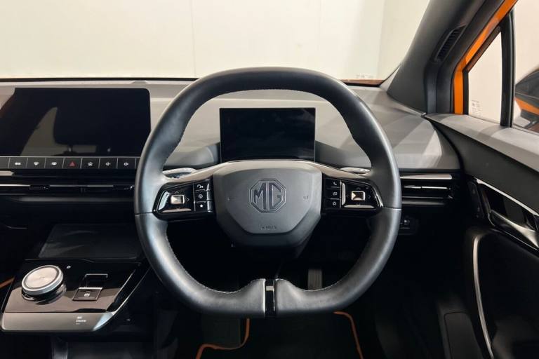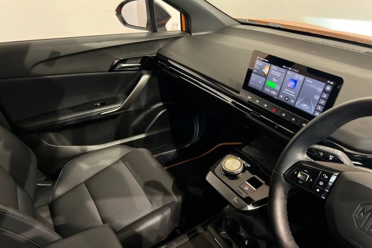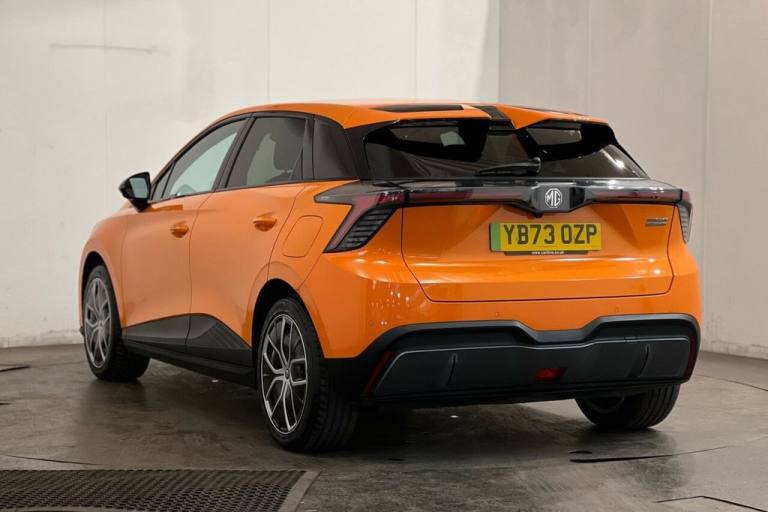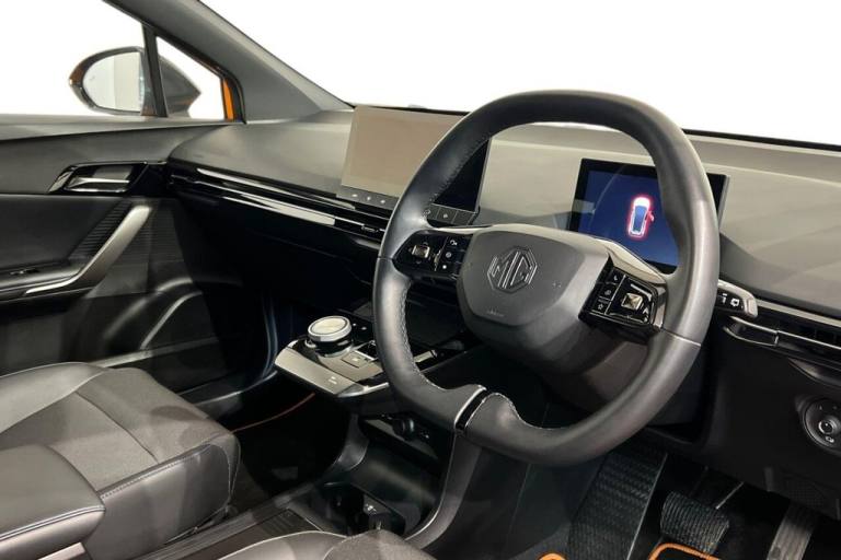 This 2023 MG MG4 Trophy Long Range electric vehicle offers an impressive new battery range of 270 miles, making it an excellent choice for those seeking an extended electric driving experience. As a fully electric model, it boasts a 64 kWh battery capacity, providing ample power for your journeys. Charging at home with a 7kW charger will take approximately 10 hours for a full charge, while rapid public charging can replenish the battery from empty to 80% in just 34 minutes. This MG4 is equipped with convenient features such as a mobile phone Bluetooth key, projector LED headlights with reflective technology, rear parking sensors, and climate control for your comfort. Enjoy seamless smartphone integration with Apple CarPlay. The MG4 Trophy Long Range stands out with its substantial boot space, offering practical storage solutions for your everyday needs and longer trips. The 270 mile maximum range at new is a significant advantage, indicating its superior capability compared to many other electric vehicles in its class. This combination of long range, rapid charging, and generous interior space makes the MG4 Trophy Long Range a compelling and practical option for modern driving. Lifetime warranty available on this car, plus a £1,000 finance contribution when you part exchange. Voted UK Car Supermarket of the Year two years running, we offer 0% finance, part exchange, and lifetime warranties across our entire range. Every car is thoroughly inspected before sale and comes with a full history check, so you can buy with complete peace of mind. Buy with confidence on our best finance rates. Proud winners of the CarGurus Top-Rated Dealer 2022 and the MotoNovo Extra Mile Award. .10.25in Floating Colour Touchscreen, 18in Alloy Wheels - with Low Wind Resistance Aero Cover, 2nd Row 60-40 Split Fold Seat, 3 Rear Headrests, 360 Degree Parking Camera, 3x USB Ports - 2 Front and 1 Rear, 4 Regenerative Braking Modes - Auto-1-2-3, 5 Driving Modes - Eco-Sport-Snow-Custom-Standard, 6-Speaker Audio System with 3D Sound, 7in Full Digital Driver Information Display, ABS and EBD, Active Emergency Braking with Pedestrian and Bicycle Detection, Active Grille System - AGS, Adaptive Cruise Control, Airbags - Passenger Cut Off Switch, Alarm and Immobiliser, Android Auto, Apple CarPlay, Auto Dimming Rear View Mirror, Auto Headlights, Blind Spot Monitoring, Climate Control, DAB+ Radio, Door Opening Warning - DOW, Driver Attention Alert, Drivers Seat Belt Reminder, EBA - Emergency Brake Assist, Electric Drivers 6-Way Adjustable Seat, Electrically Adjustable - Folding - Heated - Black Door Mirrors, ESP - Electronic Stability Programme, Front and Rear Electric Windows - One Touch Down on All Windows, Front and Rear Passenger Seat Belt Reminder, Front Dual Airbags, Front Seatbelt 3 Point Pretensioner and Load Limiter, Front Side Airbags, Heated Front Seats, Height Adjustable Loading Floor, Height and Reach Adjustable Steering Wheel, Hill Start Assist, Integrated LED Daytime Running Lights, Intelligent High Beam Assist, Intelligent Speed Limit Assist with Traffic Sign Recognition, iSmart with Live Services, Lane Change Assist - LCA, Lane Keep Assist with Lane Departure Warning System, Leather Style with Cloth Inserts - Black, LED Centre Brake Light, LED Rear Lights, Mobile Phone Bluetooth Key, One Pedal Driving, Parking Sensors - Rear, Passenger Grabhandles, Passengers 4-Way Adjustable Seat, Power Assisted Steering, Projector LED Headlights with Reflective Technology, Rear Centre Light Bar with Cross Hatch Design Effect, Rear Cross Traffic Alert, Rear Grabhandles, Rear ISOFIX x2, Rear Privacy Glass, Rear Wiper, Satellite Navigation, Side Airbag Curtain, Steering Wheel - Heated, Steering Wheel - Leather, Tinted Glass, TPMS - Tyre Pressure Monitoring System, Traffic Jam Assist, Twin Areo Rear Spoiler, Type 2 Charging Cable, Vehicle to Load Charging, Volcano Orange, Wireless Mobile Phone Charger