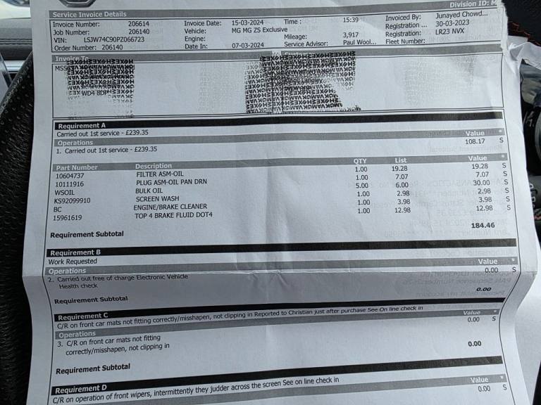 This 2023 MG ZS T GDI Exclusive is a remarkable find, boasting exceptionally low mileage for its age, having covered just 13,500 miles, and having had only one owner from new. This Euro 6 compliant 1.0 litre petrol model comes with a clear vehicle history check, offering peace of mind. Inside, youll appreciate the comfort of heated front seating and the convenience of air conditioning. For added safety and ease of driving, this ZS is equipped with rear parking sensors, auto headlights, and blind spot monitoring. The Exclusive trim level ensures a well appointed driving experience, with features designed to enhance your journeys. The inclusion of blind spot monitoring and rear parking sensors highlights how this vehicle offers superior driver assistance compared to many others. Combined with the comfort of heated seats and automatic headlights, this MG ZS provides a refined and practical option for everyday motoring..10.1in Colour Touchscreen, 12v Power Socket, 17in Alloy Wheels - Tomahawk- Diamond Cut, 2nd Row 60-40 Split Fold Seat, 360 Degree Parking Camera, 6-Speaker Audio System with 3D Sound, ABS and EBD, ARP Anti Rolling Program, Air Conditioning, Airbags - Front Passenger Deactivation Switch, Airbags - Side Curtain, Alarm & Engine Immobiliser, Android Auto, Apple CarPlay, Auto Headlights, Bi-Function LED Headlight, Blind Spot Monitoring, Bluetooth Connection, Cruise Control with Speed Limiter, DAB Radio, DRL - LED Daytime Running Lights, Drivers Seat Belt Reminder, EBA - Emergency Brake Assist, ESP - Electronic Stability Programme, Electric Driver 6 Way Adjustable Seat, Electric Parking Brake with Auto Hold, Electrically Adjustable - Folding - Heated - Body Colour Door Mirrors, Follow Me Home Headlights, Front Dual Airbags, Front Fog Lights, Front Seat Back Map Pockets, Front Seatbelt 3 Point Pretensioner and Load Limiter, Front Side Airbags, Front and Rear Aero Wiper, Front and Rear Electric Windows with Drivers One-Touch Up-Down, Front and Rear Passenger Seat Belt Reminder, Full Digital Driver Information Display, Heated Front Seating, Hill Launch Assist, Keyless Entry with Push Button Engine Start, LED Centre Brake Light, Parking Sensors - Rear, Passenger 4 Way Manual Adjustable Seat, Power Assisted Steering, Radio and AUX-USB MP3, Rain Sensing Wipers, Rear Headrest x3, Rear ISOFIX x2, Remote Central Locking, Satellite Navigation, Silver Roof Rails, Speed Sensing Locking, Steering Wheel - Leather, TPMS - Tyre Pressure Monitoring System, Trip Computer, Tyre Repair Kit, USB Mobile Phone Charging Function