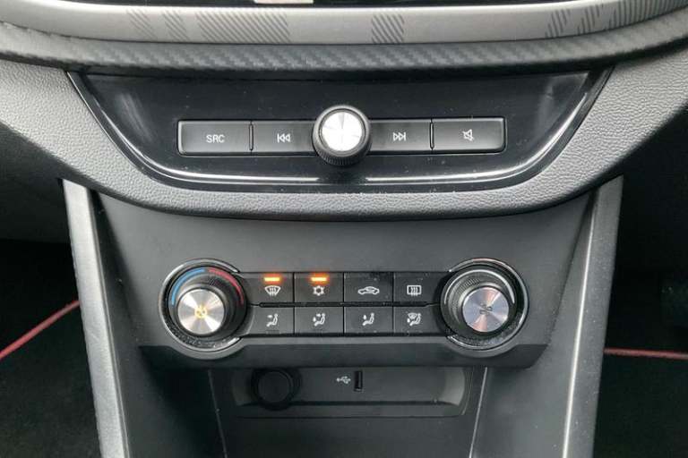 8 colour touch screen, Apple car play, Bluetooth connection, Cruise control, E-call, Headlamp on warning buzzer, PAS, Rear parking camera, Remote fuel flap release, Reverse parking sensors, Satellite navigation system, Trip computer, Auto dimming rear view mirror, Body colour bumpers, Body colour rear boot spoiler, Body coloured door handles, Body coloured electrically adjustable heated door mirrors, Body coloured side sills with black insert, Follow me home headlights, Front and rear electric windows with driver's one-touch up/down, Halogen projector headlights, LED centre brake light, LED daytime running lights, Rain sensor with automatic headlight activation, Rear side wing doors, Rear wiper, Variable front intermittent wipers, 12V socket, 3 seat bench in 2nd row, 60/40 split/folding 2nd row of seats, Air conditioning, Boot space lamp, Driver 6-way adjustable seat, Driver's footrest, Front and rear cup holders, Front headrests, Front interior lamp with reading lamps and time delay, Front sun visors with driver and passenger mirrors, Leather steering wheel with audio controls, Map pockets, Part leather upholstery + sports seats, Passenger 4-way adjustable seat, Seat back pockets, Single front passenger seat, Tilt adjustable steering column, 2 x adjustable rear head rests, 3x3 point rear seatbelts, ABS/EBD, Drivers seatbelt reminder, Dual front airbags, EBA, ESP, Front and rear passenger seat belt reminder, Front disc brakes and rear drum brakes, Front seatbelts (3-point +