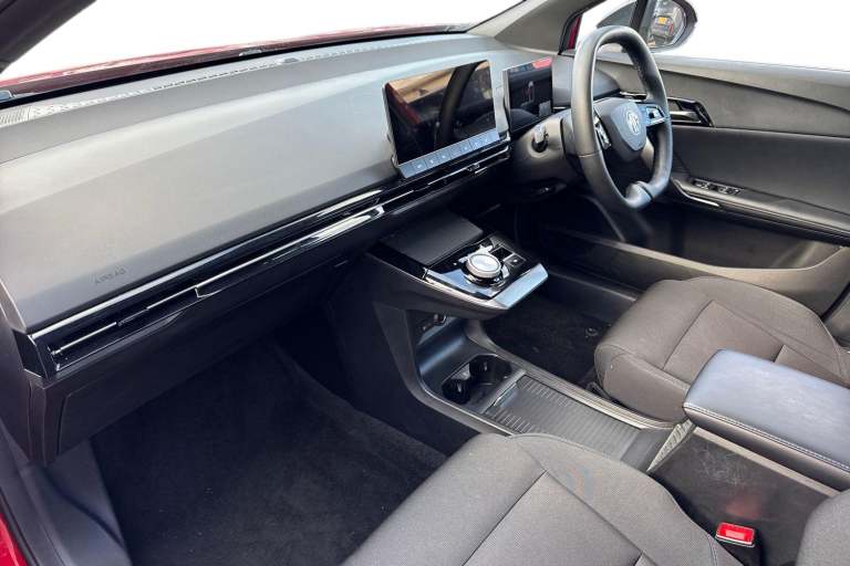 ..10.25'' floating colour touchscreen, 5 driving modes (Eco, sport, snow, custom, standard), 7'' Full digital driver information display, Adaptive cruise control, Android Auto, Apple CarPlay, Driver attention assist, E-call, Intelligent speed limit assist with traffic sign recognition, iSmart, Lane keep assist system (LAS) with Lane departure warning system (LDWS), PAS, Rear parking sensors, Traffic jam assist, 7 kW onboard charger, Vehicle to load charging, 4 speaker audio system, DAB+ radio, USB ports (2x front, 1x rear), Active grille system (AGS), Auto headlights, Electrically adjustable heated black door mirrors, Front and rear electric windows with driver's one-touch up/down, Integrated LED daytime running lights, Intelligent high beam, LED centre brake light, LED rear lights, Projector LED headlights, Rain sensing wipers, Rear side wing doors, Rear spoiler, Rear wiper, Tinted glass, 2nd row 60/40 split fold seat, 3 rear headrests, 3 seat bench in 2nd row, 4 way adjustable passenger seat, Climate control, Driver 6-way adjustable seat, Fabric upholstery, Front headrests, Leather steering wheel, One pedal drive, Rake/reach adjustable steering wheel, Single front passenger seat, 3x3 point rear seatbelts, 4 Regenerative braking modes (Auto, 1, 2, 3), ABS/EBD, Active emergency braking with pedestrian/Bicycle detection, Drivers seatbelt reminder, Dual front airbags, EBA, ESP, Front and rear passenger seat belt reminder, Front passenger airbag deactivation switch, Front seatbelts (3-point + pretensioner + load limiter), Front side airbags, Hill start assist, Rear door child safety locks, Rear seat ISOFIX x2, Side curtain airbags, Tyre pressure monitoring system, Alarm & Engine Immobiliser, 17'' alloy wheels with low wind resistance aero cover