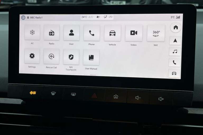 10.25 floating colour touchscreen, 360 degree parking camera, 5 driving modes (Eco, sport, snow, custom, standard), 7 Full digital driver information display, Adaptive cruise control, Android Auto, Apple CarPlay, Blind Spot Detection (BAS), Driver attention assist, E-call, Intelligent speed limit assist with traffic sign recognition, iSmart with live services (additional services include weather, live traffic, amazon prime), Lane change assist, Lane keep assist system (LAS) with Lane departure warning system (LDWS), Mobile phone bluetooth key, PAS, Rear collision warning, Rear cross traffic alert, Rear parking sensors, Satellite Navigation, Traffic jam assist, Wireless Mobile Phone Charger, Active grille system (AGS), Auto dimming rear view mirror, Auto headlights, Black rear bumper moulding, Electrically adjustable power folding heated black door mirrors, Front and rear electric windows all one-touch up/down, Integrated LED daytime running lights, Intelligent high beam, LED centre brake light, LED rear lights, Projector LED headlights with reflective technology, Rain sensing wipers, Rear centre light bar with cross hatch design effect, Rear privacy glass, Rear side wing doors, Rear wiper, Silver side moulding, Tinted glass, Twin aero rear spoiler, 2nd row 60/40 split fold seat, 3 rear headrests, 3 seat bench in 2nd row, 4 way adjustable passenger seat, 6 way electric adjustable drivers seat, Climate control, Front headrests, Heated front seats, Heated steering wheel,
