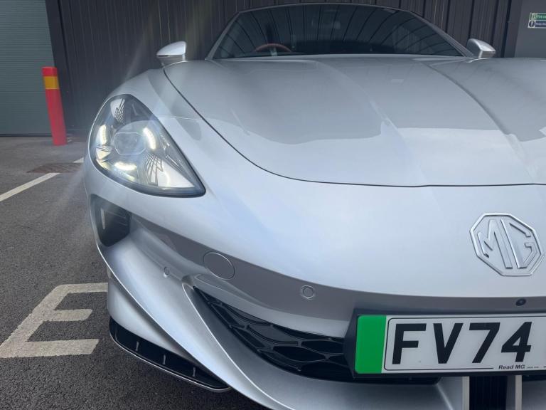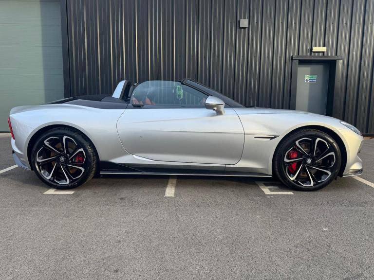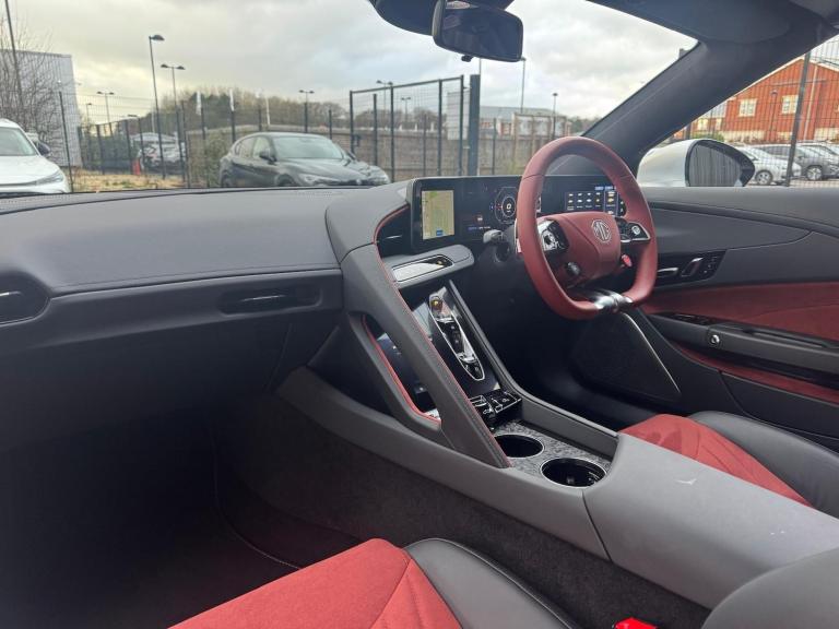 This is a 2024 MG Cyberster GT, an all-electric car with four-wheel drive. It comes in a GT trim and has only 500 miles on the clock. The vehicle is equipped with heated seats, a 360-degree parking camera, keyless entry, and adaptive cruise control. Front and rear parking sensors are also included, making parking easier.With a 77 kWh battery, this Cyberster offers a maximum range of 276 miles when new. Charging at home using a 7kW charger takes approximately 11 hours and 40 minutes. For faster charging, using a public charger can bring the battery from empty to 80% in just 43 minutes. The vehicle also features a large boot space, offering practicality that sets it apart from similar vehicles.