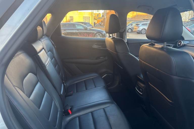 ..10.1'' colour touchscreen, Adaptive cruise control, Android Auto, Apple CarPlay, Blind spot detection, Bluetooth connectivity, Emergency call service, Full digital driver information display, Intelligent speed limit assist, Lane keep assist system (LAS) with Lane departure warning system (LDWS), PAS, Rear cross traffic alert, Rear parking camera, Rear parking sensors, Satellite navigation system, Tailgate, Traffic jam assist, Trip computer, USB mobile phone charging function, 4 speaker audio system, 4 USB ports 2 front and 2 rear, DAB audio, Auto dimming rear view mirror, Automatic headlights, Body colour electric adjustable heated door mirrors, Electric folding door mirrors, Follow me home headlights, Front and rear aero wiper, Front and rear electric windows with one-touch up/down, Intelligent high beam, LED Bi-Function headlights, LED centre brake light, LED daytime running lights, LED front and rear sequential indicators, Rain sensing wipers, Rear side wing doors, Silver roof rails, 12V power sockets, 2nd row 60/40 split fold seat, 2nd row seat with 2 stage incline adjustment, 3 rear headrests, 3 seat bench in 2nd row, 4 way manually adjustable passenger seat, 6 way manually adjustable driver's seat with lumbar support, Air conditioning, Front centre sliding armrest with storage compartment, Front headrests, Height and reach adjustable steering wheel, ISOFIX restraints on outer rear seats x2, Leather style upholstery, Single passenger seat, 3x3 point rear seatbelts, ABS/EBD, Active emergency braking with pedestrian/Bicycle detection, Anti rolling protection, Cornering brake control (CBC), Drivers seatbelt reminder, Dual front airbags, Electric parking brake with auto hold function, ESP, Front and rear passenger seat belt reminder, Front passenger airbag deactivation switch, Front seat belt height adjuster, Front seatbelts (3-point + pretensioner + load limiter), Front side airbags, Hill descent control, Hill launch assist, Manual rear child locks, Rear outer seatbelt pretensioner and load limiter, Side curtain airbags, Tyre pressure monitoring system, Alarm system and engine immobiliser, Keyless entry and push button start system, Remote central locking, Speed sensing door locks, 18'' Diamond cut alloy wheels, Tyre repair kit