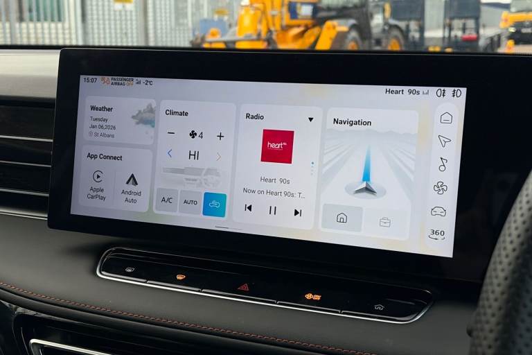 ..Driver attention alert, 12.3'' colour touchscreen, 12.3'' Virtual driver information display, 360 degree parking camera, Android Auto, Apple CarPlay, Blind spot detection, Bluetooth connectivity, Cruise control, Driver memory function, Emergency call service, Forward collision warning, Front parking sensors, iSmart, Lane change assist, Lane keep assist system (LAS) with Lane departure warning system (LDWS), Live services, PAS, Power tailgate, Rear cross traffic alert, Rear parking sensors, Satellite navigation system, Speed limit assist, Trip computer, Wireless charging, 4 USB ports 2 front and 2 rear, 8 Speaker audio system, DAB audio, Auto dimming rear view mirror, Automatic headlights, Electric adjustable/heated/folding door mirrors with memory, Follow me home headlights, Front and rear aero wiper, Front and rear electric windows with one-touch up/down, Front fog lights, Intelligent high beam, LED 3rd brake light, LED daytime running lights, LED Headlights, LED rear lights, Rain sensing wipers, Rear privacy glass, Rear side wing doors, Silver roof rails, Vehicle to Load, 12V power sockets, 2nd row 60/40 split fold seat, 3 rear headrests, 3 seat bench in 2nd row, 3 stage heated front seats, 4 way electric adjustable passenger seat, 6 way electric adjustable drivers seat + lumbar support, Dual zone automatic air conditioning, Front and rear reading lights, Front centre sliding armrest with storage compartment, Front headrests, Height and reach adjustable steering wheel, ISOFIX restraints on outer rear seats x2, Multi function steering wheel, Single passenger seat, 3x3 point rear seatbelts, ABS/EBD, Active emergency braking with pedestrian/Bicycle detection, Anti rolling protection, Door open warning, Drivers seatbelt reminder, Dual front airbags, Electric parking brake with auto hold function, ESP, Front and rear passenger seat belt reminder, Front centre airbag, Front passenger airbag deactivation switch, Front seat belt height adjuster, Front seatbelts (3-point + pretensioner + load limiter), Front side airbags, Hill descent control, Hill launch assist, Manual rear child locks, Rear outer seatbelt pretensioner and load limiter, Side curtain airbags, Tyre pressure monitoring system, Alarm system and engine immobiliser, Keyless entry and push button start system, Remote central locking, Speed sensing door locks, 19'' Blade diamond cut alloy wheels, Tyre repair kit