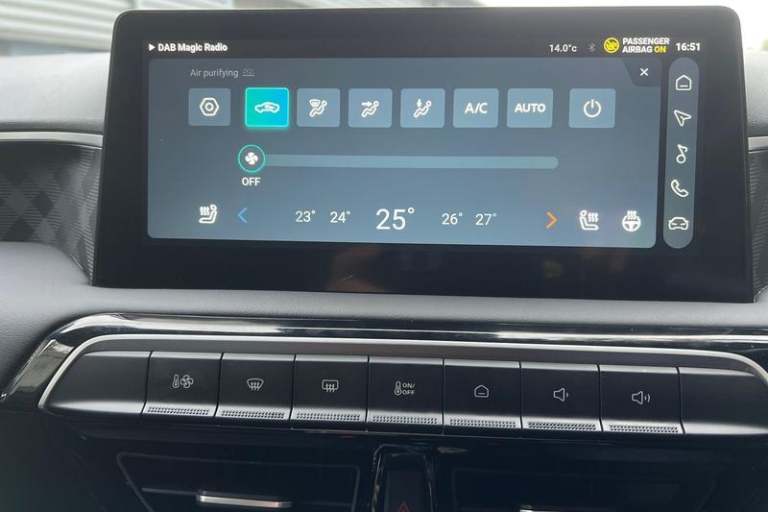 Automatic air conditioning, Heated front seats, Power assisted steering, Rear wiper, Trip computer, Front headrests, Body colour bumpers, Front side airbags, One piece folding rear seat, Heated steering wheel, Anti-lock Brake System and Electronic Brakeforce Distribution, Automatic dimming rear view mirror, Adaptive cruise control, Keyless entry, Electronic Stability Programme, LED centre brake light, Dual front airbags, Rear privacy glass, Tyre pressure monitoring system, Side curtain airbags, Hill start assist, 3x3 point rear seatbelts, Drivers seatbelt reminder, Follow me home headlights, Tyre repair kit, DAB audio, 12V socket, Front centre armrest with storage, LED daytime running lights, EBA, Forward collision warning, Rear cross traffic alert, Traffic jam assist, 3 seat bench in 2nd row, Body coloured door handles, Android Auto, Apple car play, Rear child locks, Boot space lamp, Reverse parking sensors, Front seatbelts (3-point + pretensioner + load limiter), Front sun visors with driver and passenger mirrors, Driver 6-way adjustable seat, Passenger 4-way adjustable seat, 2 x adjustable rear head rests, Body coloured electrically adjustable heated door mirrors, 6 speaker audio system, Driver attention alert system, E-call, Front passenger airbag deactivation switch, Automatic headlamps, Rear window defogger, Front and rear electric windows with driver's one-touch up/down, Front cup holders, Lane keep assist system (LAS) with Lane departure warning system (LDWS), Active