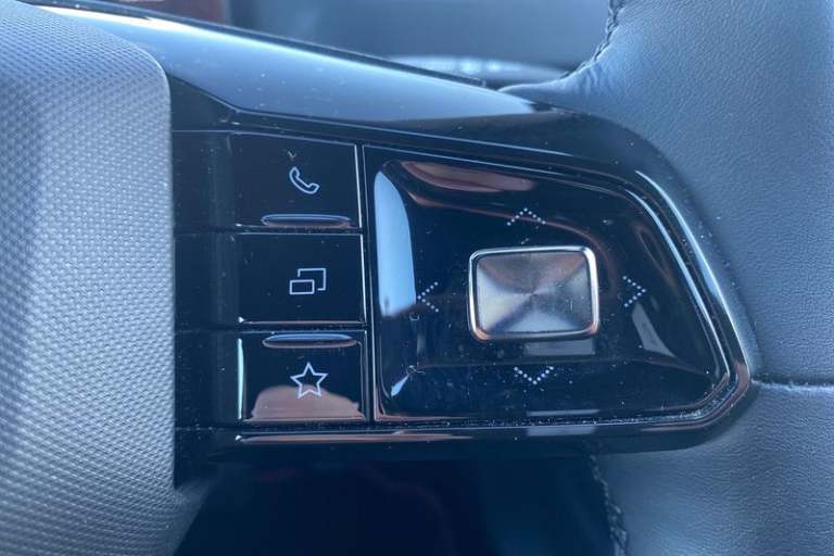 Climate control, Heated front seats, Leather steering wheel, Power assisted steering, Rear wiper, Tinted glass, Front headrests, Rear door child safety locks, Front side airbags, Rake/reach adjustable steering wheel, Heated steering wheel, Anti-lock Brake System and Electronic Brakeforce Distribution, Automatic dimming rear view mirror, Adaptive cruise control, Door open warning, 3 rear headrests, Electronic Stability Programme, LED centre brake light, Dual front airbags, Rear privacy glass, Tyre pressure monitoring system, Side curtain airbags, Hill start assist, Satellite Navigation, 3x3 point rear seatbelts, Drivers seatbelt reminder, EBA, LED rear lights, Intelligent high beam, 6 way electric adjustable drivers seat, Rear cross traffic alert, Traffic jam assist, 3 seat bench in 2nd row, Rear parking sensors, Android Auto, 360 degree parking camera, 7 kW onboard charger, Light headlining, Front seatbelts (3-point + pretensioner + load limiter), Rear collision warning, Wireless Mobile Phone Charger, Blind Spot Detection (BAS), E-call, Front passenger airbag deactivation switch, Apple CarPlay, Auto headlights, DAB+ radio, Rain sensing wipers, 6 speaker audio system with 3D sound, Integrated LED daytime running lights, Lane keep assist system (LAS) with Lane departure warning system (LDWS), Active emergency braking with pedestrian/Bicycle detection, 2nd row 60/40 split fold seat, 4 way adjustable passenger seat, Alarm & Engine Immobiliser, One pedal drive, Lane change assist,