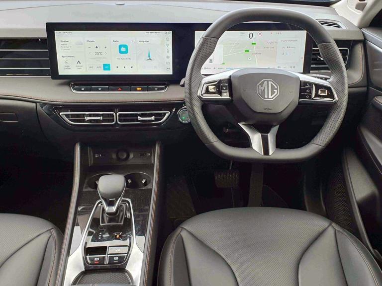 .Imagine yourself in the drivers seat of the MG HS 1.5 T-GDI Hybrid+ Trophy 5-door Auto a striking SUV that perfectly combines sportiness, luxury and eco-conscious performance. Under the bonnet, its powered by a responsive 1.5-litre turbocharged petrol engine married to an intelligent hybrid system, meaning you get both high torque and excellent efficiency. The automatic gearbox delivers smooth, seamless shifts, making every drive effortless, whether youre navigating city streets or cruising on the motorway. This car doesnt just feel powerful it feels smart. Thanks to the hybrid tech, it offers great fuel economy without sacrificing the punchiness you want from a turbo engine. Youll feel the immediate torque launch off the line, while the hybrid power quietly boosts you when needed, especially in stop-start traffic. Braking regenerates energy, meaning smarter energy usage and reduced fuel consumption. Step inside and youre greeted by a cabin thats been crafted with care. The Trophy trim gives you premium touches: elegant upholstery, a heated steering wheel, and a modern infotainment system with seamless connectivity. Thoughtful storage compartments, generous legroom, and supportive, sculpted seats make long journeys comfortable and relaxing. Practicality is second to none. Five doors and ample space make it easy for families or friends to get in and out, while the large boot handles luggage, sports gear or weekly shopping with ease. The SUV stance gives you a confident view of the road, and the suspension is tuned to balance ride comfort with agility, so its poised yet composed. Safety and driver assistance are well covered, with a suite of advanced systems to keep you protected. From lane-keep assist to parking aids, this MG is equipped to support you in a busy world. In short: the MG HS 1.5 T-GDI Hybrid+ Trophy is a sophisticated, efficient and practical SUV that delivers performance and peace of mind. If you want a powerful yet frugal ride, wrapped in style and equipped for modern life, look no further this is your car..Driver attention alert, 12.3'' colour touchscreen, 12.3'' Virtual driver information display, 360 degree parking camera, Adaptive cruise control, Android Auto, Apple CarPlay, Blind spot detection, Bluetooth connectivity, Driving modes, Emergency call service, Forward collision warning, Front parking sensors, Intelligent speed limit assist, iSmart, Lane change assist, Lane keep assist system (LAS) with Lane departure warning system