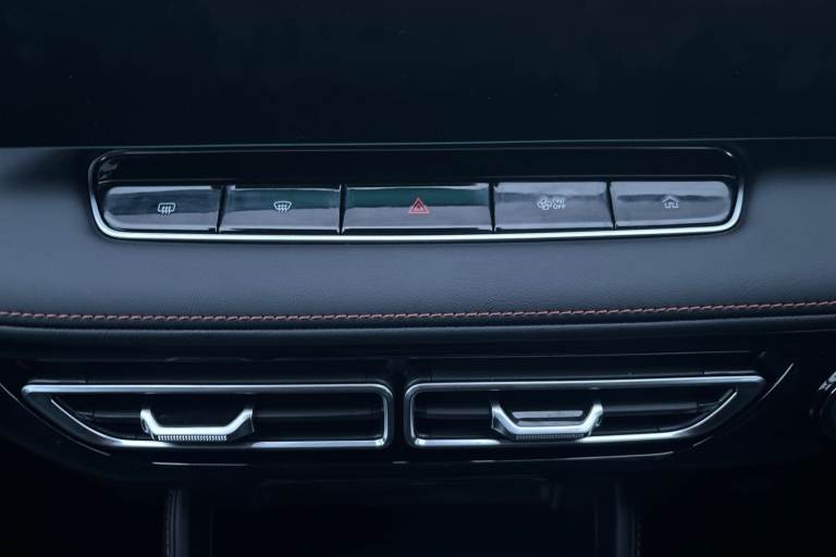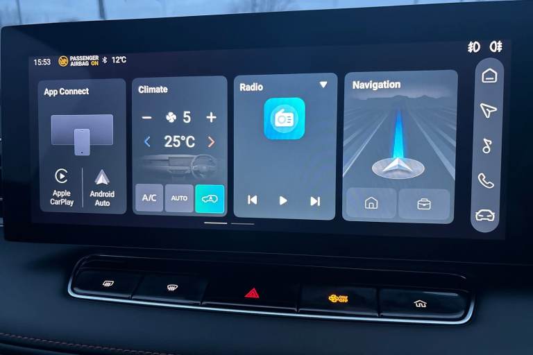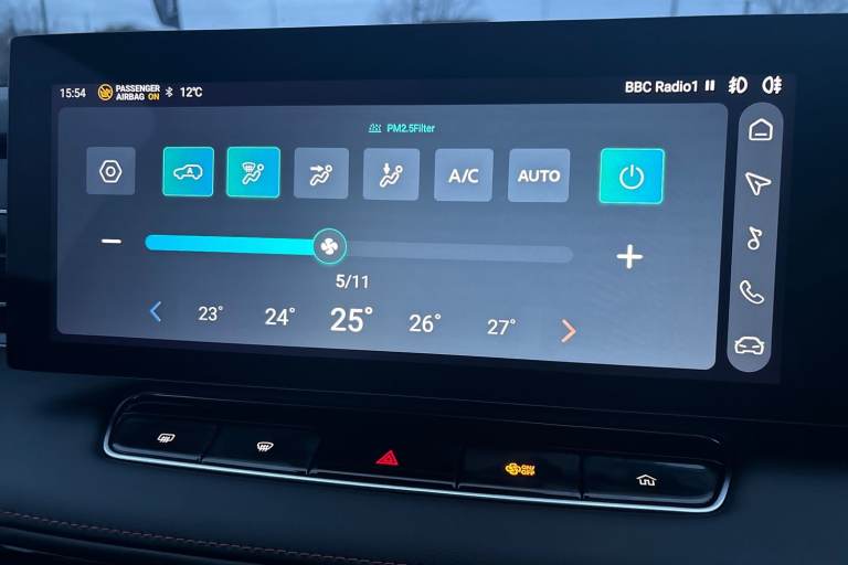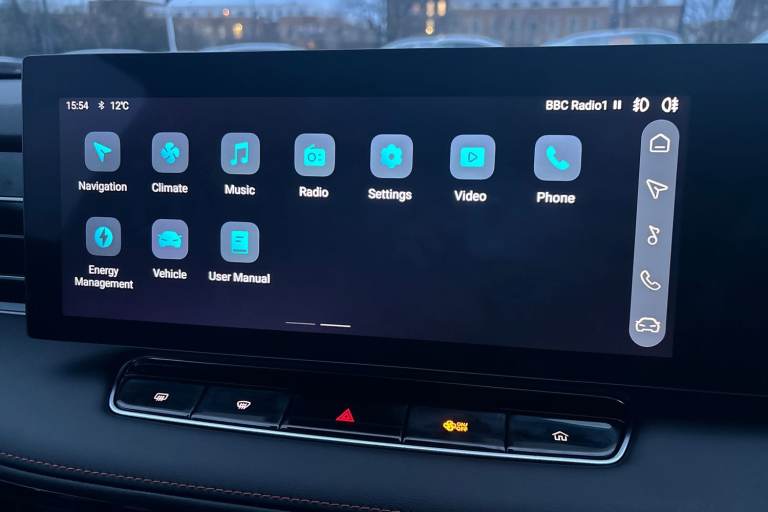 ..Driver attention alert, 12.3'' colour touchscreen, 12.3'' Virtual driver information display, Adaptive cruise control, Android Auto, Apple CarPlay, Blind spot detection, Bluetooth connectivity, Driving modes, Emergency call service, Forward collision warning, Intelligent speed limit assist, iSmart, Lane change assist, Lane keep assist system (LAS) with Lane departure warning system (LDWS), PAS, Rear cross traffic alert, Rear parking camera, Rear parking sensors, Satellite navigation system, Traffic jam assist, Trip computer, USB mobile phone charging function, 4 USB ports 2 front and 2 rear, 6 speaker audio system, DAB audio, Auto dimming rear view mirror, Automatic headlights, Electric adjustable heated door mirrors, Follow me home headlights, Front and rear aero wiper, Front and rear electric windows with driver's one-touch up/down, Front fog lights, Intelligent high beam, LED 3rd brake light, LED daytime running lights, LED Headlights, LED rear lights, Rain sensing wipers, Rear privacy glass, Rear side wing doors, Side steps, Silver roof rails, Vehicle to Load, 12V power sockets, 2nd row 60/40 split fold seat, 3 rear headrests, 3 seat bench in 2nd row, 4 way manually adjustable passenger seat, 6 way electric adjustable drivers seat, Air conditioning, Cloth upholstery, Front and rear reading lights, Front centre sliding armrest with storage compartment, Front headrests, Height and reach adjustable steering wheel, ISOFIX restraints on outer rear seats x2, Metal sports pedals, Multi function steering wheel, Single passenger seat, 3x3 point rear seatbelts, ABS/EBD, Active emergency braking with pedestrian/Bicycle detection, Anti rolling protection, Door open warning, Drivers seatbelt reminder, Dual front airbags, Electric parking brake with auto hold function, ESP, Front and rear passenger seat belt reminder, Front centre airbag, Front passenger airbag deactivation switch, Front seat belt height adjuster, Front seatbelts (3-point + pretensioner + load limiter), Front side airbags, Hill descent control, Hill launch assist, Manual rear child locks, Rear outer seatbelt pretensioner and load limiter, Side curtain airbags, Tyre pressure monitoring system, Acoustic vehicle alert system (AVAS), Alarm system and engine immobiliser, Keyless entry and push button start system, Remote central locking, Speed sensing door locks, 19'' Blade diamond cut alloy wheels, Tyre repair kit