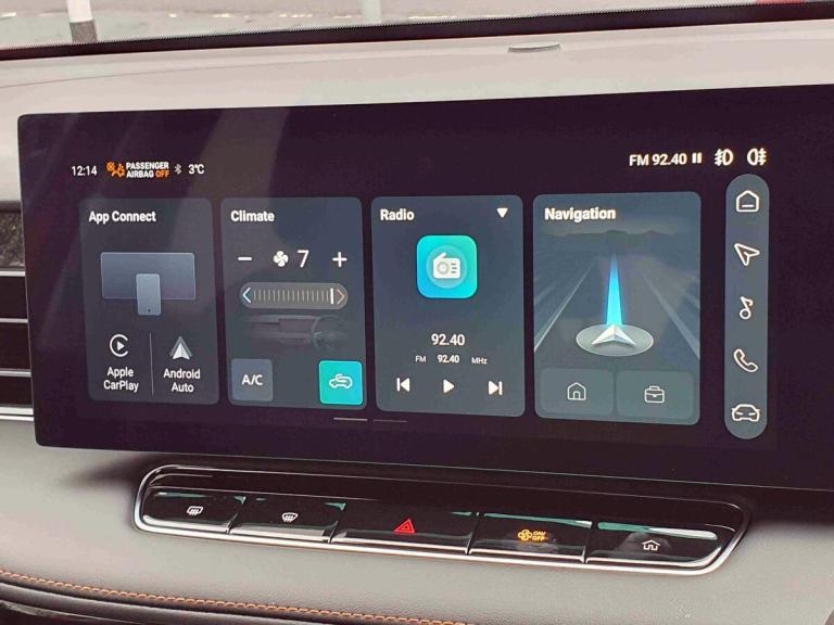 ..Driver attention alert, 12.3'' colour touchscreen, 12.3'' Virtual driver information display, Adaptive cruise control, Android Auto, Apple CarPlay, Blind spot detection, Bluetooth connectivity, Emergency call service, Forward collision warning, Intelligent speed limit assist, Lane change assist, Lane keep assist system (LAS) with Lane departure warning system (LDWS), PAS, Rear cross traffic alert, Rear parking camera, Rear parking sensors, Satellite navigation system, Traffic jam assist, Trip computer, USB mobile phone charging function, 4 USB ports 2 front and 2 rear, 6 speaker audio system, DAB audio, Auto dimming rear view mirror, Automatic headlights, Electric adjustable heated door mirrors, Follow me home headlights, Front and rear aero wiper, Front and rear electric windows with driver's one-touch up/down, Front fog lights, Intelligent high beam, LED 3rd brake light, LED daytime running lights, LED Headlights, LED rear lights, Rain sensing wipers, Rear privacy glass, Rear side wing doors, Silver roof rails, Vehicle to Load, 12V power sockets, 2nd row 60/40 split fold seat, 3 rear headrests, 3 seat bench in 2nd row, 4 way manually adjustable passenger seat, 6 way electric adjustable drivers seat, Air conditioning, Cloth upholstery, Front and rear reading lights, Front centre sliding armrest with storage compartment, Front headrests, Height and reach adjustable steering wheel, ISOFIX restraints on outer rear seats x2, Multi function steering wheel, Single passenger seat, 3x3 point rear seatbelts, ABS/EBD, Active emergency braking with pedestrian/Bicycle detection, Anti rolling protection, Door open warning, Drivers seatbelt reminder, Dual front airbags, Electric parking brake with auto hold function, ESP, Front and rear passenger seat belt reminder, Front centre airbag, Front passenger airbag deactivation switch, Front seat belt height adjuster, Front seatbelts (3-point + pretensioner + load limiter), Front side airbags, Hill descent control, Hill launch assist, Manual rear child locks, Rear outer seatbelt pretensioner and load limiter, Side curtain airbags, Tyre pressure monitoring system, Alarm system and engine immobiliser, Keyless entry and push button start system, Remote central locking, Speed sensing door locks, 19'' Blade diamond cut alloy wheels, Tyre repair kit