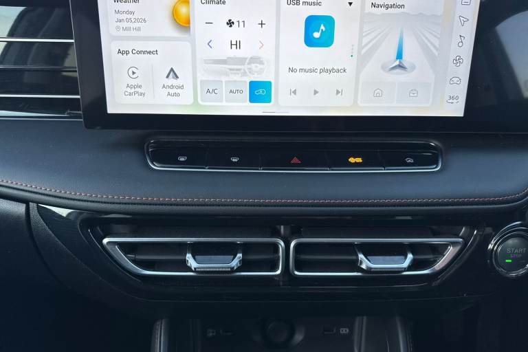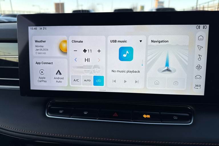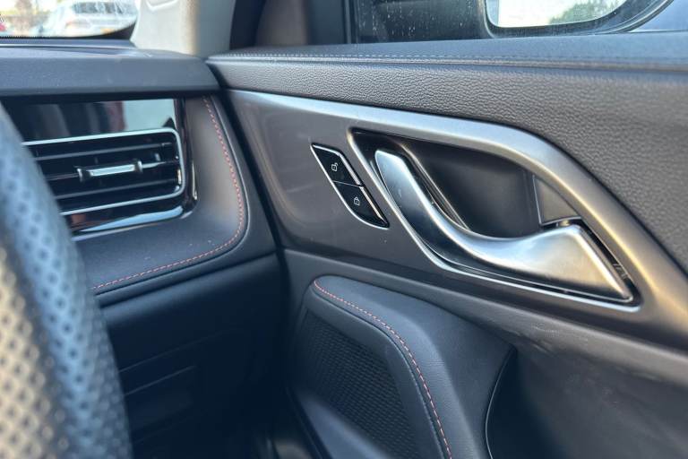 ..Driver attention alert, 12.3'' colour touchscreen, 12.3'' Virtual driver information display, 360 degree parking camera, Android Auto, Apple CarPlay, Blind spot detection, Bluetooth connectivity, Cruise control, Driver memory function, Emergency call service, Forward collision warning, Front parking sensors, iSmart, Lane change assist, Lane keep assist system (LAS) with Lane departure warning system (LDWS), Live services, PAS, Power tailgate, Rear cross traffic alert, Rear parking sensors, Satellite navigation system, Speed limit assist, Trip computer, Wireless charging, 4 USB ports 2 front and 2 rear, 8 Speaker audio system, DAB audio, Auto dimming rear view mirror, Automatic headlights, Electric adjustable/heated/folding door mirrors with memory, Follow me home headlights, Front and rear aero wiper, Front and rear electric windows with one-touch up/down, Front fog lights, Intelligent high beam, LED 3rd brake light, LED daytime running lights, LED Headlights, LED rear lights, Rain sensing wipers, Rear privacy glass, Rear side wing doors, Silver roof rails, Vehicle to Load, 12V power sockets, 2nd row 60/40 split fold seat, 3 rear headrests, 3 seat bench in 2nd row, 3 stage heated front seats, 4 way electric adjustable passenger seat, 6 way electric adjustable drivers seat + lumbar support, Dual zone automatic air conditioning, Front and rear reading lights, Front centre sliding armrest with storage compartment, Front headrests, Height and reach adjustable steering wheel, ISOFIX restraints on outer rear seats x2, Multi function steering wheel, Single passenger seat, 3x3 point rear seatbelts, ABS/EBD, Active emergency braking with pedestrian/Bicycle detection, Anti rolling protection, Door open warning, Drivers seatbelt reminder, Dual front airbags, Electric parking brake with auto hold function, ESP, Front and rear passenger seat belt reminder, Front centre airbag, Front passenger airbag deactivation switch, Front seat belt height adjuster, Front seatbelts (3-point + pretensioner + load limiter), Front side airbags, Hill descent control, Hill launch assist, Manual rear child locks, Rear outer seatbelt pretensioner and load limiter, Side curtain airbags, Tyre pressure monitoring system, Alarm system and engine immobiliser, Keyless entry and push button start system, Remote central locking, Speed sensing door locks, 19'' Blade diamond cut alloy wheels, Tyre repair kit