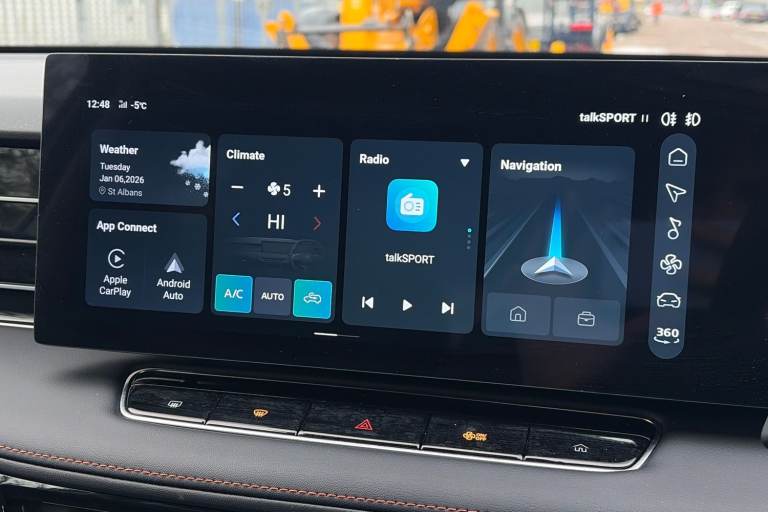 ..Driver attention alert, 12.3'' colour touchscreen, 12.3'' Virtual driver information display, 360 degree parking camera, Android Auto, Apple CarPlay, Blind spot detection, Bluetooth connectivity, Cruise control, Driver memory function, Emergency call service, Forward collision warning, Front parking sensors, iSmart, Lane change assist, Lane keep assist system (LAS) with Lane departure warning system (LDWS), Live services, PAS, Power tailgate, Rear cross traffic alert, Rear parking sensors, Satellite navigation system, Speed limit assist, Trip computer, Wireless charging, 4 USB ports 2 front and 2 rear, 8 Speaker audio system, DAB audio, Auto dimming rear view mirror, Automatic headlights, Electric adjustable/heated/folding door mirrors with memory, Follow me home headlights, Front and rear aero wiper, Front and rear electric windows with one-touch up/down, Front fog lights, Intelligent high beam, LED 3rd brake light, LED daytime running lights, LED Headlights, LED rear lights, Rain sensing wipers, Rear privacy glass, Rear side wing doors, Silver roof rails, Vehicle to Load, 12V power sockets, 2nd row 60/40 split fold seat, 3 rear headrests, 3 seat bench in 2nd row, 3 stage heated front seats, 4 way electric adjustable passenger seat, 6 way electric adjustable drivers seat + lumbar support, Dual zone automatic air conditioning, Front and rear reading lights, Front centre sliding armrest with storage compartment, Front headrests, Height and reach adjustable steering wheel, ISOFIX restraints on outer rear seats x2, Multi function steering wheel, Single passenger seat, 3x3 point rear seatbelts, ABS/EBD, Active emergency braking with pedestrian/Bicycle detection, Anti rolling protection, Door open warning, Drivers seatbelt reminder, Dual front airbags, Electric parking brake with auto hold function, ESP, Front and rear passenger seat belt reminder, Front centre airbag, Front passenger airbag deactivation switch, Front seat belt height adjuster, Front seatbelts (3-point + pretensioner + load limiter), Front side airbags, Hill descent control, Hill launch assist, Manual rear child locks, Rear outer seatbelt pretensioner and load limiter, Side curtain airbags, Tyre pressure monitoring system, Alarm system and engine immobiliser, Keyless entry and push button start system, Remote central locking, Speed sensing door locks, 19'' Blade diamond cut alloy wheels, Tyre repair kit