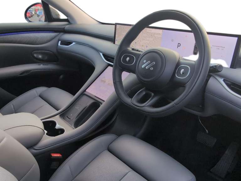 With only 8 miles on the clock, this 2025 MG IM6 Launch Edition presents an exceptional opportunity to own a virtually new electric vehicle. This Four Wheel Drive model boasts a substantial 100 kWh battery, offering a maximum range of 313 miles from new. For your peace of mind, the MOT is valid until September 2028. The Launch Edition trim comes equipped with convenient features such as Mobile Phone Bluetooth Key, Adaptive Cruise Control, Automatic Headlights, and Keyless Entry, ensuring a modern and effortless driving experience. Experience the thrill of rapid acceleration with the MG IM6 Launch Edition, achieving 0-62mph in a remarkable 3.5 seconds, a performance that sets it apart from many similar vehicles. This electric car also offers a generous boot space, making it practical for all your needs. When it comes to charging, a full charge at home using a 7kW charger takes approximately 17 hours and 46 minutes, while rapid public charging can take you from empty to 80% in just 19 minutes. Heated rear seats are also included, adding an extra layer of comfort for passengers.