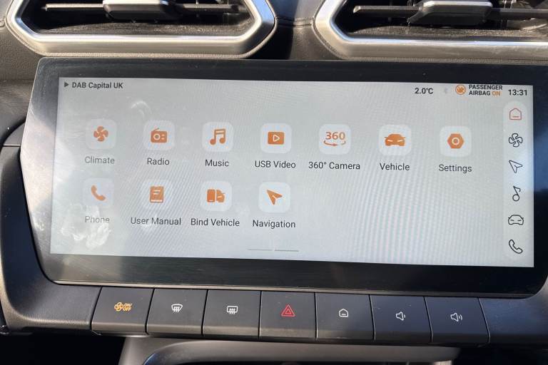 ..'Lights On' Reminder warning buzzer, 12.3'' colour touchscreen, 3 driving modes Normal, Eco, Sport, 3 Energy regeneration modes (1, 2, 3), 360 degree view camera, 7'' Driver display, Adaptive cruise control with intelligent cruise assist, Android Auto, Apple CarPlay, Blind zone detection with lane change assist, Bluetooth connectivity, Driver attention alert system, eCall emergency call system, Forward collision warning, Intelligent speed limit assist, iSmartphone connectivity, Lane keep assist with lane departure warning system, PAS, Rear cross traffic alert, Rear parking sensor, Satellite navigation with speed limit recognition, Traffic jam assist, Trip computer, Unsteady driving warning, 1x USB port at rear (power only) type A, 2x USB ports at Front (1x data and power type A, x1 power only type C) and 1x rearview mirror USB power only - type A, 6 speaker audio system, DAB audio, Radio, MP3 and AUX/USB, Automatic headlamps, Body colour bumpers, Body colour door handles, Body colour electric adjustable folding heated door mirrors, Chrome side window trim, Follow me home headlights, Front and rear aero wiper, Front and rear electric windows with driver's one-touch up/down, Heated rear window, Intelligent headlamp control, LED centre brake light, LED daytime running lights, LED projector headlights, LED rear lights, Rain sensor wiper, Rear privacy glass, Rear side wing doors, Rear spoiler, Silver roof rails, 12V power sockets, 2nd row 60/40 split/fold, 3 rear headrests, 3 seat bench in 2nd row, 4 way manually adjustable passenger seat, 6 way electric adjustable drivers seat, Adjustable rear headrests, Automatic air conditioning, Boot light, Driver's footrest, Front adjustable cup holder, Front centre armrest with storage, Front grab handles, Front headrests, Front interior courtesy light with time delay and reading lights, Front seat back map pockets, Front sun visors with driver and passenger mirrors, Glovebox, Heated front seats, Heated steering wheel, Illuminated switches and controls, Internal chrome door handles, Leather style upholstery, Manual lumbar support on driver seat, Multifunctional steering wheel, Rear grab handle, Single front passenger seat, Tilt adjustable steering column, Two position boot floor, 3x3 point rear seatbelts, ABS/EBD, Active emergency braking with pedestrian/Bicycle detection, Anti rolling protection, Automatic unlocking of doors in case of impact, Drivers seatbelt reminder, Dual front airbags, EBA, Electric parking
