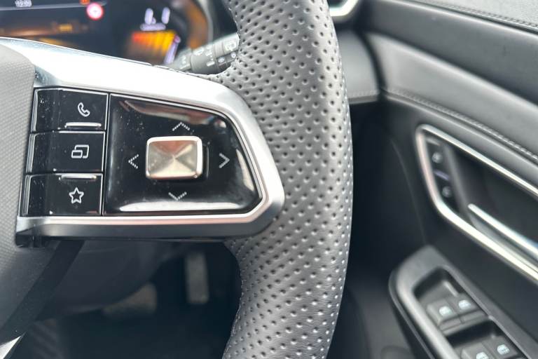 ..'Lights On' Reminder warning buzzer, 12.3'' colour touchscreen, 3 driving modes Normal, Eco, Sport, 3 Energy regeneration modes (1, 2, 3), 360 degree view camera, 7'' Driver display, Adaptive cruise control with intelligent cruise assist, Android Auto, Apple CarPlay, Blind zone detection with lane change assist, Bluetooth connectivity, Driver attention alert system, eCall emergency call system, Forward collision warning, Intelligent speed limit assist, iSmartphone connectivity, Lane keep assist with lane departure warning system, PAS, Rear cross traffic alert, Rear parking sensor, Satellite navigation with speed limit recognition, Traffic jam assist, Trip computer, Unsteady driving warning, 1x USB port at rear (power only) type A, 2x USB ports at Front (1x data and power type A, x1 power only type C) and 1x rearview mirror USB power only - type A, 6 speaker audio system, DAB audio, Radio, MP3 and AUX/USB, Automatic headlamps, Body colour bumpers, Body colour door handles, Body colour electric adjustable folding heated door mirrors, Chrome side window trim, Follow me home headlights, Front and rear aero wiper, Front and rear electric windows with driver's one-touch up/down, Heated rear window, Intelligent headlamp control, LED centre brake light, LED daytime running lights, LED projector headlights, LED rear lights, Rain sensor wiper, Rear privacy glass, Rear side wing doors, Rear spoiler, Silver roof rails, 12V power sockets, 2nd row 60/40 split/fold, 3 rear headrests, 3 seat bench in 2nd row, 4 way manually adjustable passenger seat, 6 way electric adjustable drivers seat, Adjustable rear headrests, Automatic air conditioning, Boot light, Driver's footrest, Front adjustable cup holder, Front centre armrest with storage, Front grab handles, Front headrests, Front interior courtesy light with time delay and reading lights, Front seat back map pockets, Front sun visors with driver and passenger mirrors, Glovebox, Heated front seats, Heated steering wheel, Illuminated switches and controls, Internal chrome door handles, Leather style upholstery, Manual lumbar support on driver seat, Multifunctional steering wheel, Rear grab handle, Single front passenger seat, Tilt adjustable steering column, Two position boot floor, 3x3 point rear seatbelts, ABS/EBD, Active emergency braking with pedestrian/Bicycle detection, Anti rolling protection, Automatic unlocking of doors in case of impact, Drivers seatbelt reminder, Dual front airbags, EBA, Electric parking