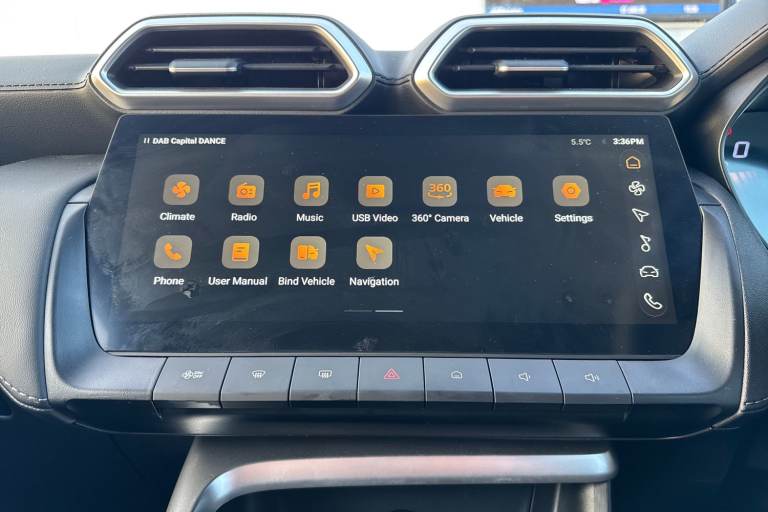 ..'Lights On' Reminder warning buzzer, 12.3'' colour touchscreen, 3 driving modes Normal, Eco, Sport, 3 Energy regeneration modes (1, 2, 3), 360 degree view camera, 7'' Driver display, Adaptive cruise control with intelligent cruise assist, Android Auto, Apple CarPlay, Blind zone detection with lane change assist, Bluetooth connectivity, Driver attention alert system, eCall emergency call system, Forward collision warning, Intelligent speed limit assist, iSmartphone connectivity, Lane keep assist with lane departure warning system, PAS, Rear cross traffic alert, Rear parking sensor, Satellite navigation with speed limit recognition, Traffic jam assist, Trip computer, Unsteady driving warning, 1x USB port at rear (power only) type A, 2x USB ports at Front (1x data and power type A, x1 power only type C) and 1x rearview mirror USB power only - type A, 6 speaker audio system, DAB audio, Radio, MP3 and AUX/USB, Automatic headlamps, Body colour bumpers, Body colour door handles, Body colour electric adjustable folding heated door mirrors, Chrome side window trim, Follow me home headlights, Front and rear aero wiper, Front and rear electric windows with driver's one-touch up/down, Heated rear window, Intelligent headlamp control, LED centre brake light, LED daytime running lights, LED projector headlights, LED rear lights, Rain sensor wiper, Rear privacy glass, Rear side wing doors, Rear spoiler, Silver roof rails, 12V power sockets, 2nd row 60/40 split/fold, 3 rear headrests, 3 seat bench in 2nd row, 4 way manually adjustable passenger seat, 6 way electric adjustable drivers seat, Adjustable rear headrests, Automatic air conditioning, Boot light, Driver's footrest, Front adjustable cup holder, Front centre armrest with storage, Front grab handles, Front headrests, Front interior courtesy light with time delay and reading lights, Front seat back map pockets, Front sun visors with driver and passenger mirrors, Glovebox, Heated front seats, Heated steering wheel, Illuminated switches and controls, Internal chrome door handles, Leather style upholstery, Manual lumbar support on driver seat, Multifunctional steering wheel, Rear grab handle, Single front passenger seat, Tilt adjustable steering column, Two position boot floor, 3x3 point rear seatbelts, ABS/EBD, Active emergency braking with pedestrian/Bicycle detection, Anti rolling protection, Automatic unlocking of doors in case of impact, Drivers seatbelt reminder, Dual front airbags, EBA, Electric parking