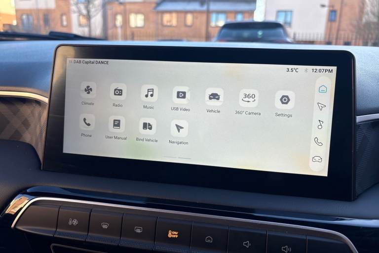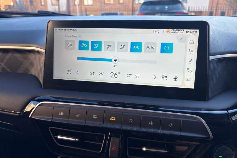 ..10.25'' Colour touchscreen, 3 driving modes Normal, Eco, Sport, 3 Energy regeneration modes (1, 2, 3), 360 degree camera with rear sensor, 7'' Driver display, Adaptive cruise control, Android Auto, Apple car play, Blind zone detection with lane change assist, Bluetooth connection, Driver attention alert system, E-call, Forward collision warning, Intelligent speed limit assist, Lane keep assist system (LAS) with Lane departure warning system (LDWS), PAS, Rear cross traffic alert, Reverse parking sensors, Satellite navigation with speed limit recognition, Traffic jam assist, Trip computer, 6 speaker audio system, DAB audio, iSmart phone connectivity, Radio, MP3 and AUX/USB, USB ports (2x front, 1x rear), Auto dimming rear view mirror, Automatic headlamps, Body colour bumpers, Body coloured door handles, Body coloured electrically adjustable heated door mirrors, Follow me home headlights, Front and rear electric windows with driver's one-touch up/down, Intelligent headlamp control, LED centre brake light, LED daytime running lights, LED projector headlights, Rain sensor wiper, Rear privacy glass, Rear side wing doors, Rear window defogger, Rear wiper, 12V socket, 3 seat bench in 2nd row, Automatic air conditioning, Boot space lamp, Driver 6-way adjustable seat, Front centre armrest with storage, Front cup holders, Front headrests, Front interior courtesy light with time delay and reading lights, Front passenger seat map pocket, Front sun visors with driver and passenger mirrors, Heated front seats, Heated steering wheel, Leather style with cloth inserts upholstery, Multifunction steering wheel, One piece folding rear seat, Passenger 4-way adjustable seat, Reach and rake 4 way adjust steering column, Single front passenger seat, 2 x adjustable rear head rests, 3x3 point rear seatbelts, ABS/EBD, Active emergency braking with pedestrian/Bicycle detection, Drivers seatbelt reminder, Dual front airbags, EBA, Electric parking brake with autohold, ESP, Front and rear passenger seat belt reminder, Front passenger airbag deactivation switch, Front seatbelts (3-point + pretensioner + load limiter), Front side airbags, Hill start assist, Rear child locks, Rear isofix x2, Side curtain airbags, Tyre pressure monitoring system, Alarm & Engine Immobiliser, Keyless entry, Remote Central Locking with Fold-away Key, 16'' Atlas alloy wheel, Tyre repair kit
