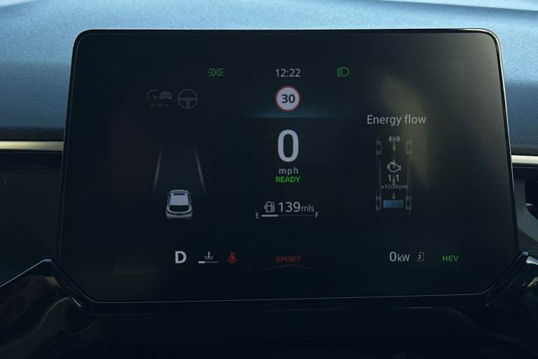 ..10.25'' Colour touchscreen, 3 driving modes Normal, Eco, Sport, 3 Energy regeneration modes (1, 2, 3), 360 degree camera with rear sensor, 7'' Driver display, Adaptive cruise control, Android Auto, Apple car play, Blind zone detection with lane change assist, Bluetooth connection, Driver attention alert system, E-call, Forward collision warning, Intelligent speed limit assist, Lane keep assist system (LAS) with Lane departure warning system (LDWS), PAS, Rear cross traffic alert, Reverse parking sensors, Satellite navigation with speed limit recognition, Traffic jam assist, Trip computer, 6 speaker audio system, DAB audio, iSmart phone connectivity, Radio, MP3 and AUX/USB, USB ports (2x front, 1x rear), Auto dimming rear view mirror, Automatic headlamps, Body colour bumpers, Body coloured door handles, Body coloured electrically adjustable heated door mirrors, Follow me home headlights, Front and rear electric windows with driver's one-touch up/down, Intelligent headlamp control, LED centre brake light, LED daytime running lights, LED projector headlights, Rain sensor wiper, Rear privacy glass, Rear side wing doors, Rear window defogger, Rear wiper, 12V socket, 3 seat bench in 2nd row, Automatic air conditioning, Boot space lamp, Driver 6-way adjustable seat, Front centre armrest with storage, Front cup holders, Front headrests, Front interior courtesy light with time delay and reading lights, Front passenger seat map pocket, Front sun visors with driver and passenger mirrors, Heated front seats, Heated steering wheel, Leather style with cloth inserts upholstery, Multifunction steering wheel, One piece folding rear seat, Passenger 4-way adjustable seat, Reach and rake 4 way adjust steering column, Single front passenger seat, 2 x adjustable rear head rests, 3x3 point rear seatbelts, ABS/EBD, Active emergency braking with pedestrian/Bicycle detection, Drivers seatbelt reminder, Dual front airbags, EBA, Electric parking brake with autohold, ESP, Front and rear passenger seat belt reminder, Front passenger airbag deactivation switch, Front seatbelts (3-point + pretensioner + load limiter), Front side airbags, Hill start assist, Rear child locks, Rear isofix x2, Side curtain airbags, Tyre pressure monitoring system, Alarm & Engine Immobiliser, Keyless entry, Remote Central Locking with Fold-away Key, 16'' Atlas alloy wheel, Tyre repair kit
