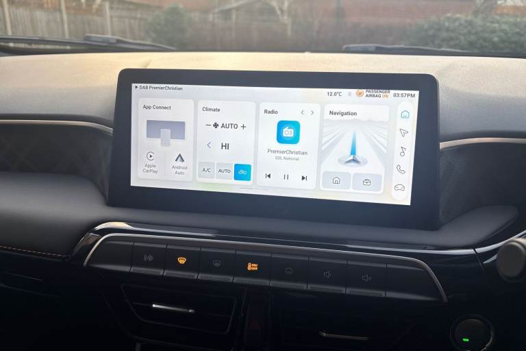 ..10.25'' Colour touchscreen, 3 driving modes Normal, Eco, Sport, 3 Energy regeneration modes (1, 2, 3), 360 degree camera with rear sensor, 7'' Driver display, Adaptive cruise control, Android Auto, Apple car play, Blind zone detection with lane change assist, Bluetooth connection, Driver attention alert system, E-call, Forward collision warning, Intelligent speed limit assist, Lane keep assist system (LAS) with Lane departure warning system (LDWS), PAS, Rear cross traffic alert, Reverse parking sensors, Satellite navigation with speed limit recognition, Traffic jam assist, Trip computer, 6 speaker audio system, DAB audio, iSmart phone connectivity, Radio, MP3 and AUX/USB, USB ports (2x front, 1x rear), Auto dimming rear view mirror, Automatic headlamps, Body colour bumpers, Body coloured door handles, Body coloured electrically adjustable heated door mirrors, Follow me home headlights, Front and rear electric windows with driver's one-touch up/down, Intelligent headlamp control, LED centre brake light, LED daytime running lights, LED projector headlights, Rain sensor wiper, Rear privacy glass, Rear side wing doors, Rear window defogger, Rear wiper, 12V socket, 3 seat bench in 2nd row, Automatic air conditioning, Boot space lamp, Driver 6-way adjustable seat, Front centre armrest with storage, Front cup holders, Front headrests, Front interior courtesy light with time delay and reading lights, Front passenger seat map pocket, Front sun visors with driver and passenger mirrors, Heated front seats, Heated steering wheel, Leather style with cloth inserts upholstery, Multifunction steering wheel, One piece folding rear seat, Passenger 4-way adjustable seat, Reach and rake 4 way adjust steering column, Single front passenger seat, 2 x adjustable rear head rests, 3x3 point rear seatbelts, ABS/EBD, Active emergency braking with pedestrian/Bicycle detection, Drivers seatbelt reminder, Dual front airbags, EBA, Electric parking brake with autohold, ESP, Front and rear passenger seat belt reminder, Front passenger airbag deactivation switch, Front seatbelts (3-point + pretensioner + load limiter), Front side airbags, Hill start assist, Rear child locks, Rear isofix x2, Side curtain airbags, Tyre pressure monitoring system, Alarm & Engine Immobiliser, Keyless entry, Remote Central Locking with Fold-away Key, 16'' Atlas alloy wheel, Tyre repair kit