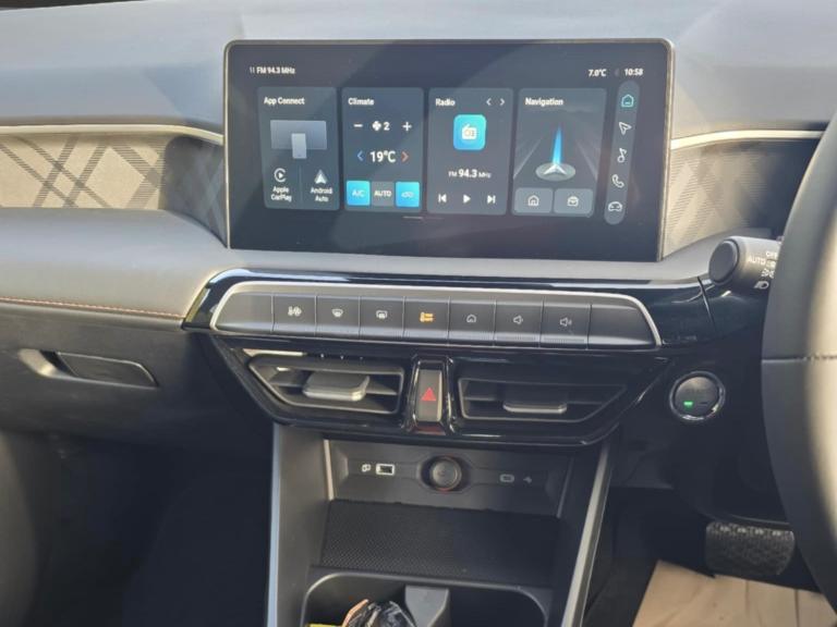 2 x adjustable rear head rests, 3x3 point rear seatbelts, Active emergency braking with pedestrian/Bicycle detection, Drivers seatbelt reminder, Dual front airbags, Front and rear passenger seat belt reminder, Front passenger airbag deactivation switch, Front seatbelts (3-point + pretensioner + load limiter), Front side airbags, Rear child locks, Rear ISOFIX child-seat upper tether & lower anchor, Side curtain airbags, Tyre pressure monitoring system, Alarm & Engine Immobiliser, Keyless entry, Remote Central Locking with Fold-away Key, Anti-lock Brake System and Electronic Brakeforce Distribution, EBA, Electric parking brake with autohold, Electronic Stability Programme, Hill start assist, Automatic dimming rear view mirror, Body coloured electrically adjustable heated door mirrors, Front and rear electric windows with driver's one-touch up/down, Rain sensor wiper, Rear privacy glass, Rear window defogger, Rear wiper, Body colour bumpers, Body coloured door handles, Rear side wing doors, Solid paint, Automatic headlamps, Follow me home headlights, Intelligent headlamp control, LED centre brake light, LED daytime running lights, LED projector headlights, 3 seat bench in 2nd row, Driver 6-way adjustable seat, Front headrests, Front passenger seat map pocket, Heated front seats, One piece folding rear seat, Passenger 4-way adjustable seat, Single front passenger seat, Boot space lamp, Front interior courtesy light with time delay and reading lights, 12V socket, Front centre armrest with storage, Front cup holders, Front sun visors with driver and passenger mirrors, Heated steering wheel, Leather style with cloth inserts upholstery, Multifunction steering wheel, Tilt adjustable steering column, Air conditioning, 360 degree camera with rear sensor, Adaptive cruise control, Blind zone detection with lane change assist, Driver attention alert system, Forward collision warning, Intelligent speed limit assist, Lane keep assist system (LAS) with Lane departure warning system (LDWS), Power assisted steering, Rear cross traffic alert, Reverse parking sensors, 10.25" Colour touchscreen, 7" Driver display, Satellite navigation with speed limit recognition, Traffic jam assist, Trip computer, Android Auto, Apple car play, Bluetooth connection, E-call, 1 x USB port at rear for charging only, 6 speaker audio system, DAB audio, Radio, MP3 and AUX/USB, USB ports (2x front, 1x rear), 16" Atlas alloy wheel, Tyre repair kit