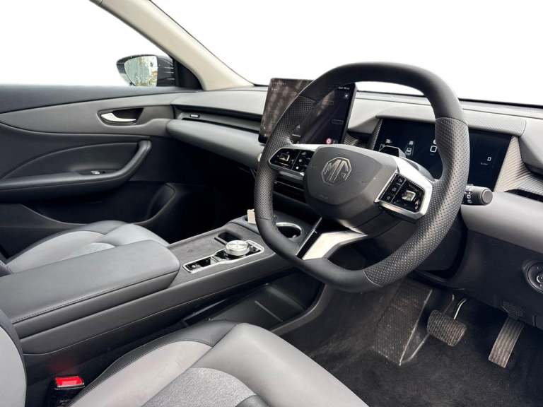 ..10.25'' floating colour touchscreen, 360 degree parking camera, 5 driving modes (Eco, sport, snow, custom, standard), Adaptive cruise control, Android Auto, Apple CarPlay, Blind spot detection (BAS) with lane change assist (LCA), Driver attention assist, E-call, Emergency Lane Keeping Assist (ELKA), EV trip planner, Intelligent speed limit assist with traffic sign recognition, iSmart with live services (additional services include weather, live traffic, amazon prime), Lane keep assist system (LAS) with Lane departure warning system (LDWS), Mobile phone bluetooth key, PAS, Rear cross traffic alert, Rear parking sensors, Satellite Navigation, Smart tailgate, Traffic jam assist, Wireless Mobile Phone Charger, 7 kW onboard charger, Battery pre heating ahead of charging, Vehicle to load charging, 12.8'' HD infotainment system, 4 USB ports, 6 speakers, DAB+ radio, USB ports (2x front, 1x rear), Active grille system (AGS), Auto headlights, Black rear bumper moulding, Electrically adjustable power folding heated black door mirrors, Front and rear electric windows with driver's one-touch up/down, Integrated LED daytime running lights, Intelligent high beam, LED centre brake light, LED Headlights, LED rear lights, Manual dimming rear view mirror, Rain sensing wipers, Rear fog lights, Rear privacy glass, Rear side wing doors, Rear spoiler, Rear wiper, Silver roof rails, Tinted glass, 2nd row 60/40 split fold seat, 3 rear headrests, 3 seat bench in 2nd row, 4 way adjustable passenger seat, 6 way electric adjustable drivers seat, Automatic climate control, Driver's manual adjustable lumbar support, Driver/passenger sunvisors and vanity mirrors, Front headrests, Heated front seats, Heated steering wheel, Leather style multifunction steering wheel, Leather style with cloth inserts upholstery, One pedal drive, Rake/reach adjustable steering wheel, Rear air vents, Rear centre armrest, Rear reading lights, Single front passenger seat, 4 Regenerative braking modes (Auto, 1, 2, 3), ABS/EBD, Active emergency braking with pedestrian/Bicycle detection, Autohold with hill start assist, Door open warning, Drivers seatbelt reminder, Dual front airbags, EBA, ESP, Forward and rear collision warning, Front & rear seatbelts (3-point + pretensioner + load limiter), Front and rear passenger seat belt reminder, Front central airbag, Front passenger airbag deactivation switch, Front side airbags, Rear door child safety locks, Rear seat ISOFIX x2, Side curtain airbags, Tyre pressure