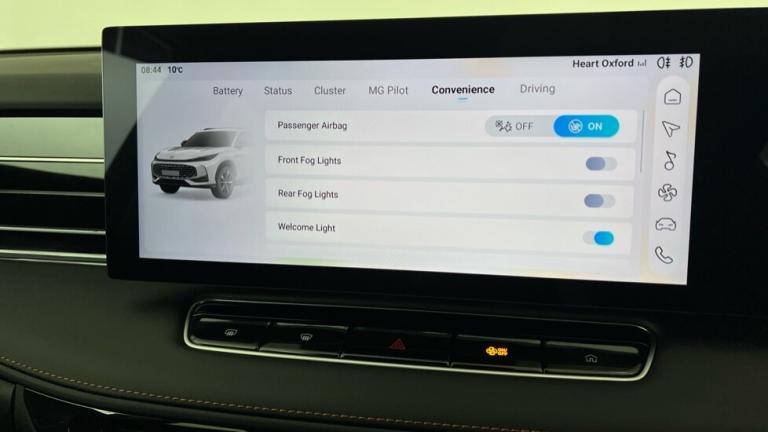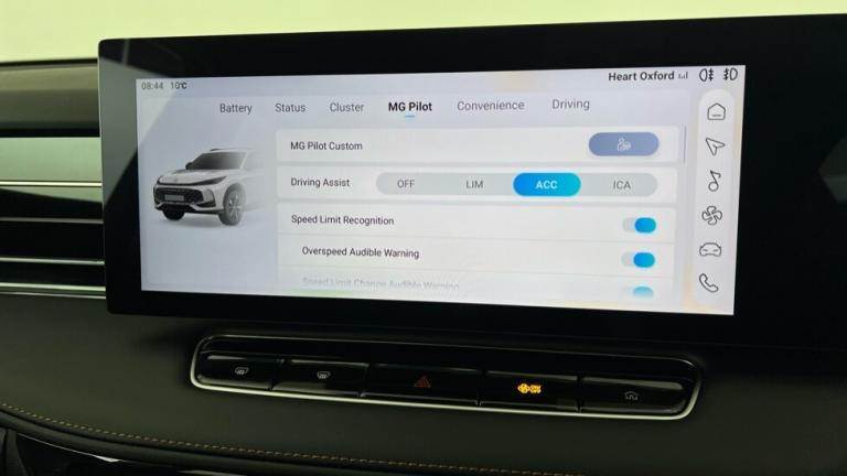 ..Driver attention alert, 12.3'' colour touchscreen, 12.3'' Virtual driver information display, Adaptive cruise control, Apple CarPlay and Android Auto (wireless), Blind spot detection, Bluetooth connectivity, Driving modes, Emergency call service, Forward collision warning, Intelligent speed limit assist, iSmart, Lane change assist, Lane keep assist system (LAS) with Lane departure warning system (LDWS), MG Pilot Custom function, PAS, Rear cross traffic alert, Rear parking camera, Rear parking sensors, Satellite navigation system, Traffic jam assist, Trip computer, USB mobile phone charging function, 6 speaker audio system, DAB audio, USB-C x 4 (2 x front and 2 x rear), Auto dimming rear view mirror, Automatic headlights, Electric adjustable heated door mirrors, Follow me home headlights, Front and rear aero wiper, Front and rear electric windows with driver's one-touch up/down, Front fog lights, Intelligent high beam, LED 3rd brake light, LED daytime running lights, LED Headlights, LED rear lights, Rain sensing wipers, Rear privacy glass, Rear side wing doors, Silver roof rails, Vehicle to Load, 12V power sockets, 2nd row 60/40 split fold seat, 3 rear headrests, 3 seat bench in 2nd row, 4 way manually adjustable passenger seat, 6 way electric adjustable drivers seat, Air conditioning, Cloth upholstery, Front and rear reading lights, Front centre sliding armrest with storage compartment, Front headrests, Height and reach adjustable steering wheel, ISOFIX restraints on outer rear seats x2, Multi function steering wheel, Single passenger seat, 3x3 point rear seatbelts, ABS/EBD, Active emergency braking with pedestrian/Bicycle detection, Anti rolling protection, Door open warning, Drivers seatbelt reminder, Dual front airbags, Electric parking brake with auto hold function, ESP, Front and rear passenger seat belt reminder, Front centre airbag, Front passenger airbag deactivation switch, Front seat belt height adjuster, Front seatbelts (3-point + pretensioner + load limiter), Front side airbags, Hill descent control, Hill launch assist, Manual rear child locks, Rear outer seatbelt pretensioner and load limiter, Side curtain airbags, Tyre pressure monitoring system, Acoustic vehicle alert system (AVAS), Alarm system and engine immobiliser, Keyless entry and push button start system, Remote central locking, Speed sensing door locks, 19'' Blade diamond cut alloy wheels, Tyre repair kit