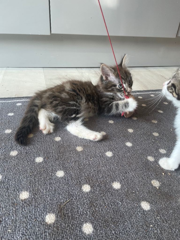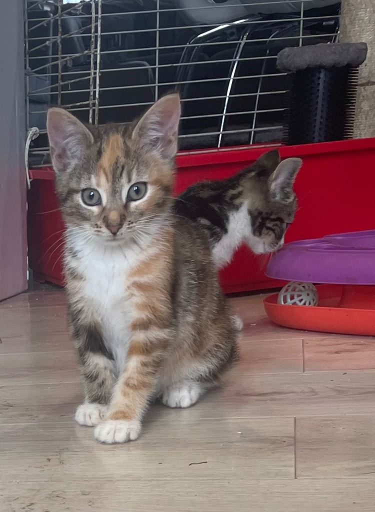 Tabby and calico kittens for sale, ready to go to their forever home, playful, litter trained, eating wet and dry food. £50 each