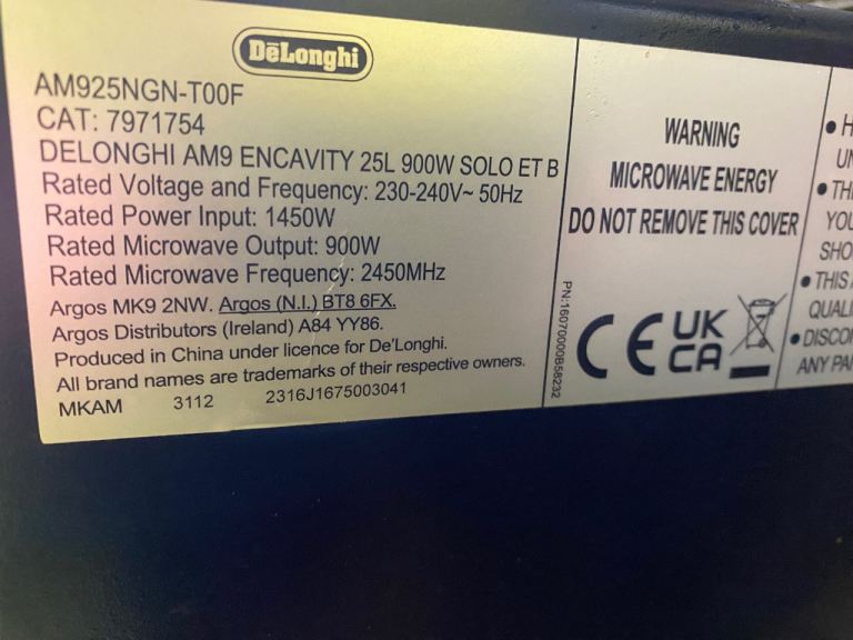 Delonghi microwave oven 900w
