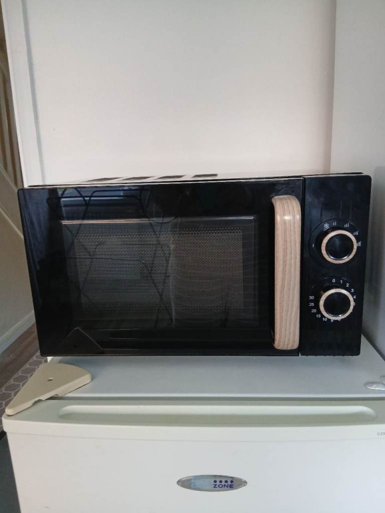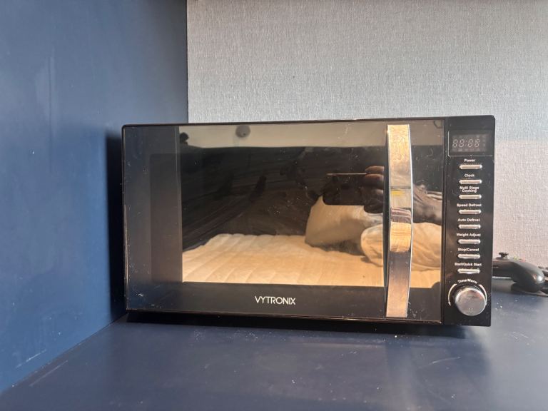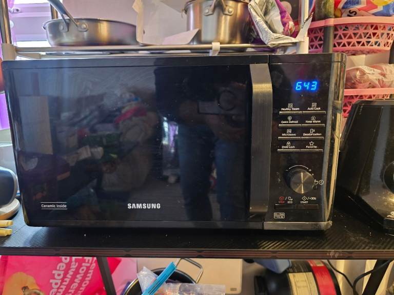 Door won’t click closed fully and shows a DOOR display on its screen. As a result the oven/microwave won’t work. Door just needs a part but it all works well and hardly used so if you can collect and take away and fix the door it will work fine.