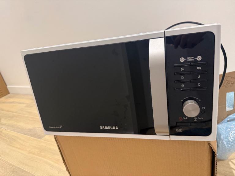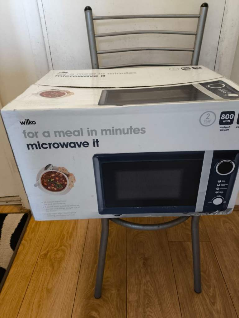 SILVER MICROWAVE OVEN IN GOOD WORKING CONDITION.