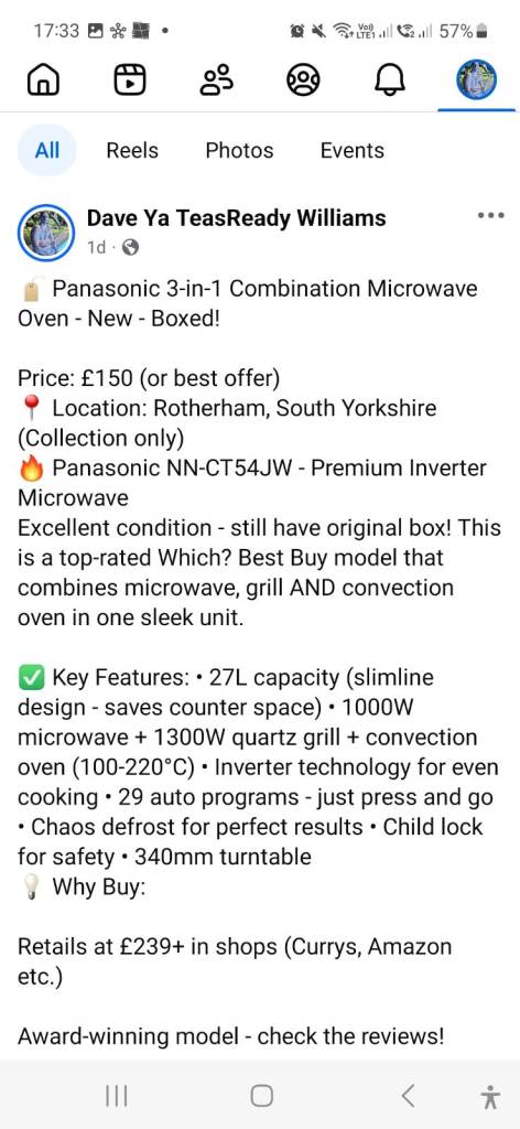 Brand new Panasonic 3-in-1 Combination Microwave Oven, still in its original box and unused.