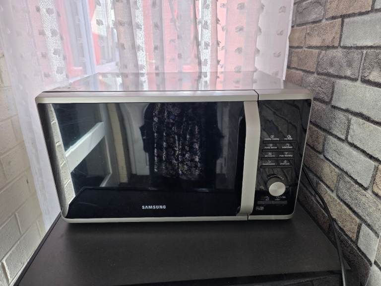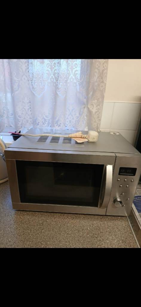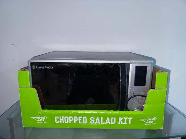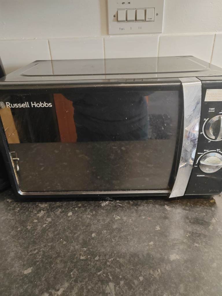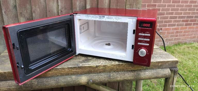 Russell Hobbs 800 Watts Microwave oven in working order. Small foot print and red colour in fair condition.