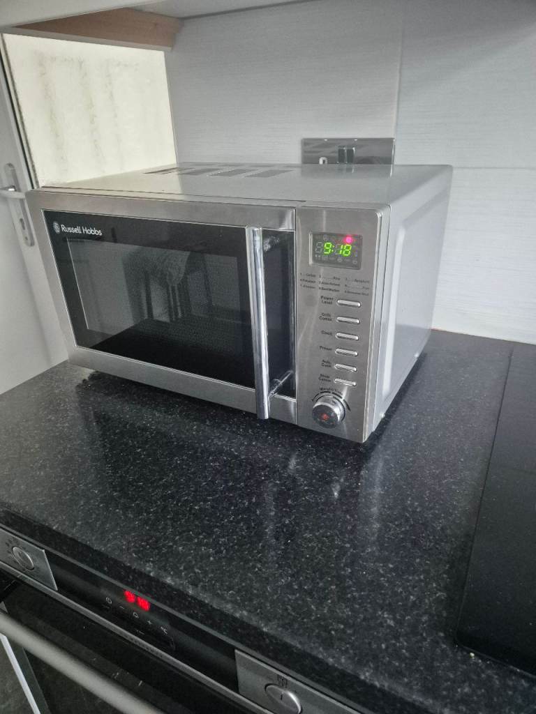 Russell Hobbs microwave in very good working condition. Modern, minimal design with an easy-to-use digital control panel, rotary dial, and preset functions.