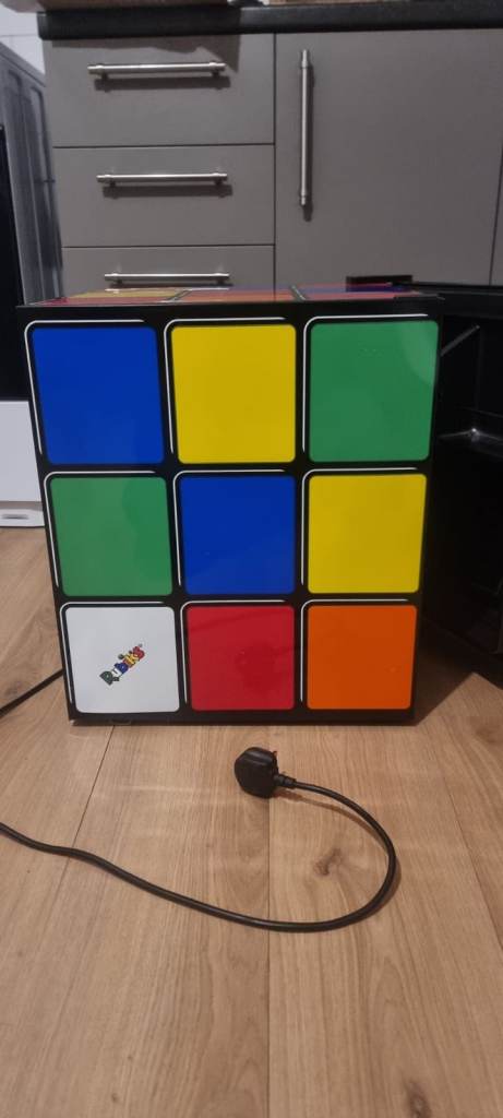 This was a stop gap for me moving to a house that needs renovation. Funky Rubik's cube design, works fine with temperature adjustment dial on the back. Small but roomy.