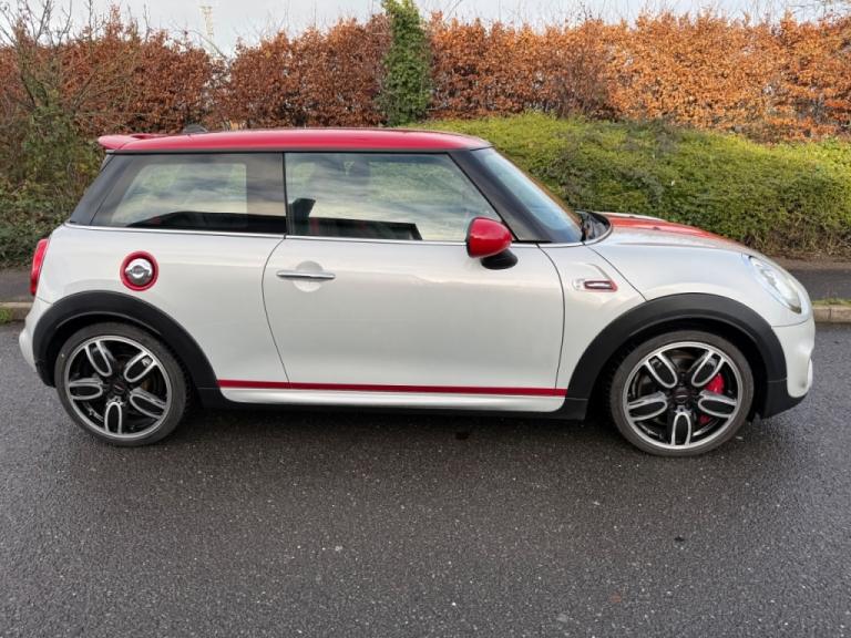 Superb Mini John Cooper Works 2.0 Petrol 6 Speed Manual Finished In White Silver Pearl With Black And Red Half Leather Trim. Super car in excellent condition, huge spec including DAB radio, Sat Nav, Park Pilot, JCW branded sports trim, AUX & USB connectivity, Bluetooth phone connection, premium sound, privacy pack, climate control air conditioning, full electric pack, auto lights and wipers, contrast roof and mirrors in Red, diamond cut two tone alloys in excellent condition, looks and drives superb, .