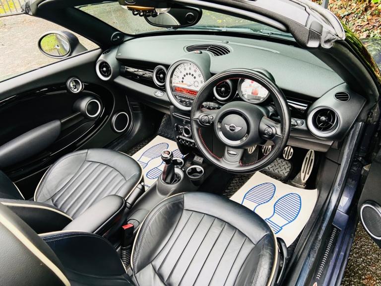 NOW AVAILABLE - MINI COOPER S 184 - CONVERTIBLE - ROADSTER - 1.6 2dr - JCW AEROKIT and CHILI Pack - PETROL - 1 OWNER From New - Registered 17/6/2013 - Manual. Presented Extremely Well with Low Miles of only 69598 from New and Careful Ownership History - HPI CLEAR. Private Plate Included but can be removed if preferred. Finished in Stunning High Class Grey Metallic with contrasting Oxford Black Full Leather Interior. A Loved and Well Kept Example by its Currant Lady Owner From New, which has been Meticulously Maintained and in Outstanding Condition for its Age, with Full Documented Service History showing 8 Service Stamps so No Expense Spared albeit covering less than 5000 miles a year. Recent Work Carried out Includes a Full Service with 4 New Tyres and a 12 months MOT with No Advisories. Unmarked Bodywork and Spotless Interior, it drives and looks much like a Newer Example with Poise and Precision. Refinements include: JCW Factory AEROKIT, 17 Inch JCW Alloys (Newly Professionally Refurbished), JCW Chili Pack, Upgraded Harman Kardon Sound, Bi-Xenon Headlamps, Heated Seats, Cruise Control, Climate Control with Air Conditioning, JCW Multi Function Steering Wheel, Radio Boost with USB, Parking Sensors, Privacy Glass, Carbon Cube Trim. An all round Well Built and Reliable Fun Car especially in the Summer for Roof Down Adventures but with ridiculously Low Runnings Costs ie Low Road Tax of £195 and a sensible 45mpg. Would make a Great Xmas Surprise, at a Winter Price for a big saving, rather than an inflated Summer Price! Supplied with Mini manuals/case with Service Book, 2 Keys and carpet mats. All vehicles supplied by RKD Automotive Ltd are supplied with a minimum of 12 month MOT, 12 Month Comprehensive Warranty covering all Major Mechanicals included with roadside assistance, all vehicles must pass a vigorous 150 multi point inspection to meet high standards.Get in touch for more details. Part Exchange Welcome.Nationwide Delivery Available. Viewing by Appointment.