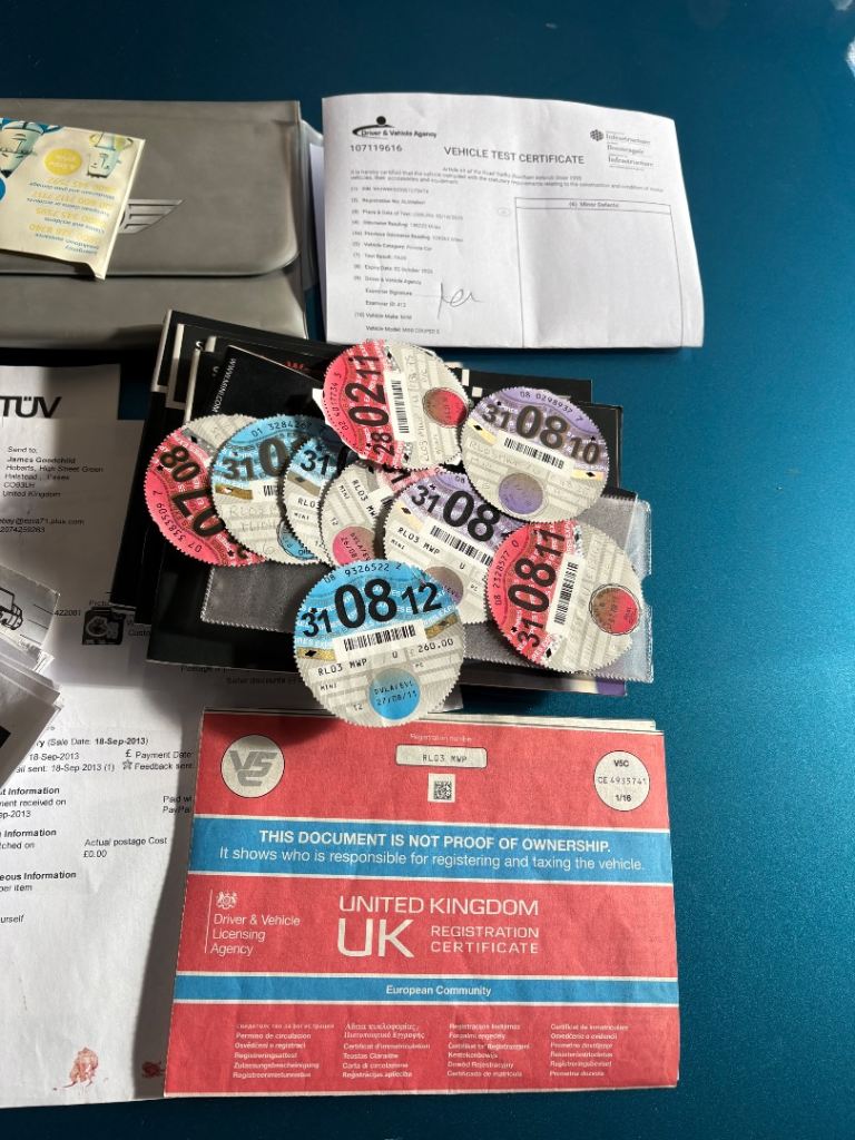Full service history with all old tax discs, mots and every receipt from new