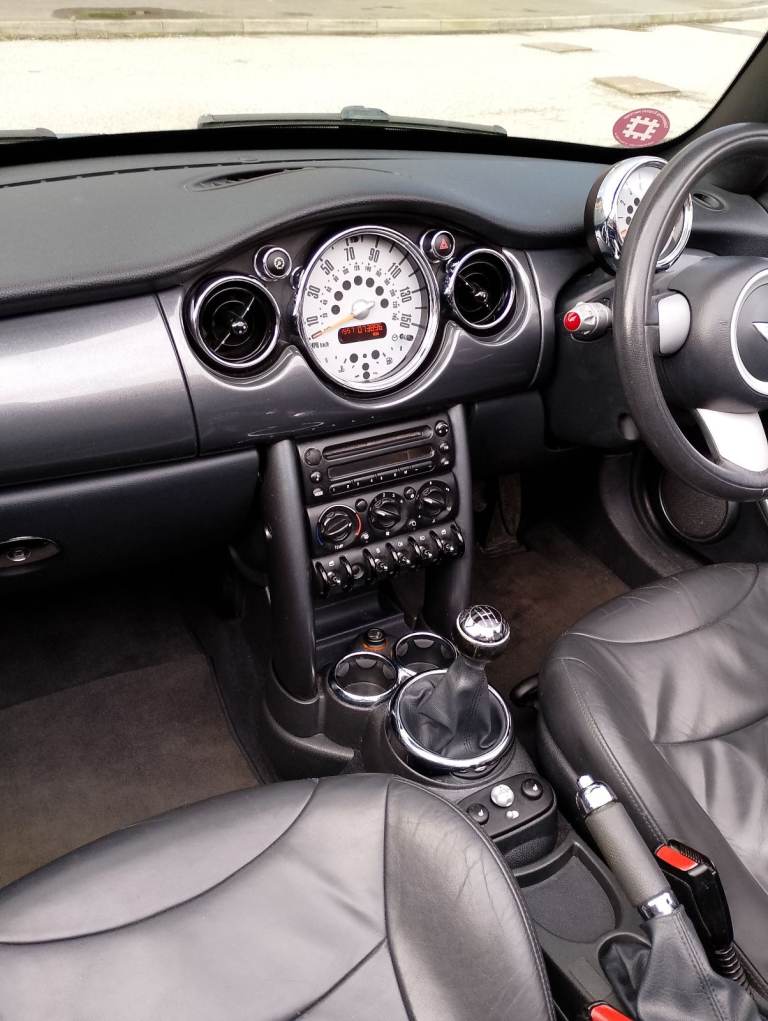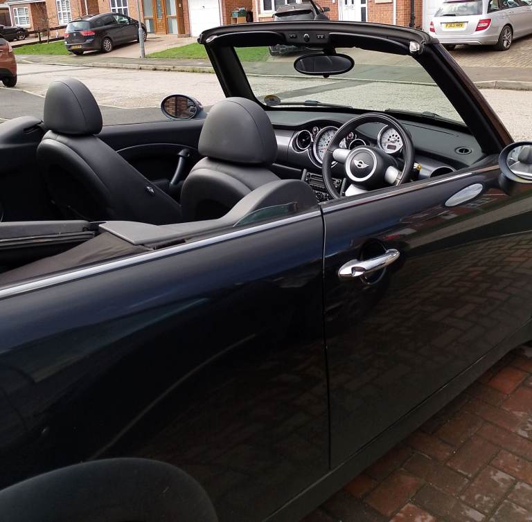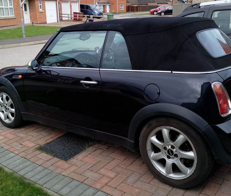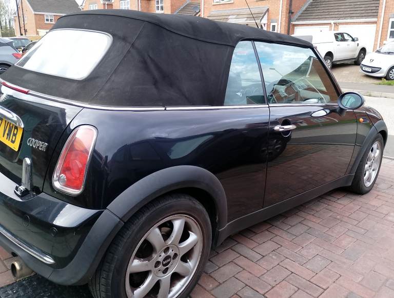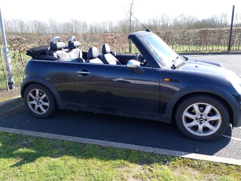 1.6 Cooper convertible, 74000 miles. All body work and hood in very good condition. Full leather interior with heated front seats. Recently fitted exhaust (February 2026). Radio and CD player. Parking sensors. MOT to August 2026, taxed until May 2026. Ideal car for the Summer months and beyond!