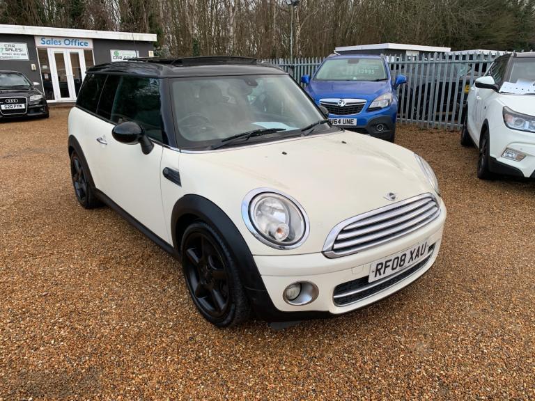Very nice Clubman Cooper with great specification including Panoramic glass roof, black alloys, heated seats, parking sensors, full leather, privacy glass, climate control etc. MOT 30th October. Road tax only £20. Excellent throughout. Part exchange welcome. Comes with 3 months Premium warranty