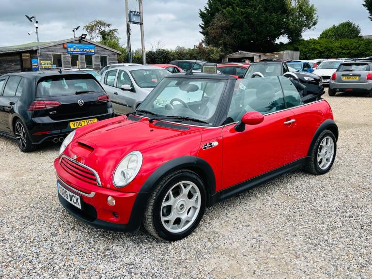 2008 Mini Cooper s Convertible - Low mileage at just 65k with service history - Can be supplied with 12 months Mot - this is the supercharged not turbo - As with a lot of red cars there is some laquer peel - Px possible Features Include: , 16in light alloy x- lite wheels, 17in crown spoke light alloy wheels when with chilli pack, black hood, body colour door mirrors, light alloy wheels & mirror caps- white, soft top hood- dark blue, soft top hood- dark green, alloy patina look interior trim, anthracite interior trim, brilliant silver interior trim, delete cooper s badge, front sports seats, leather gear knob, mini cooper s leather steering wheel, cd changer i- bus preparation, cassette player, radio wave, single cd player