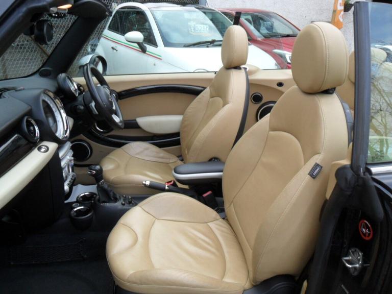MINI CONVERTIBLE 1.6 Cooper S Auto. Fantastic car finished in black with full beige leather interior with heated front seats, this car has £8,595 of extras when new,,, showing only 852912 miles and with an mot through to 17th March 2027 with no advisories complete with 12 stamp service history and both keys present. roof working as it should. Extras include alloys, cruise control. radio c/d with Bluetooth connectivity, satellite navigation etc. Card Payments Accepted. Please checkout our web site for all our available cars